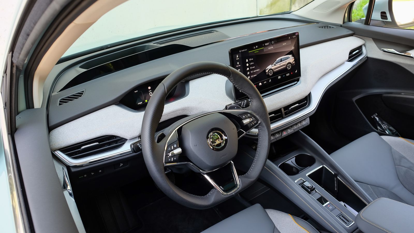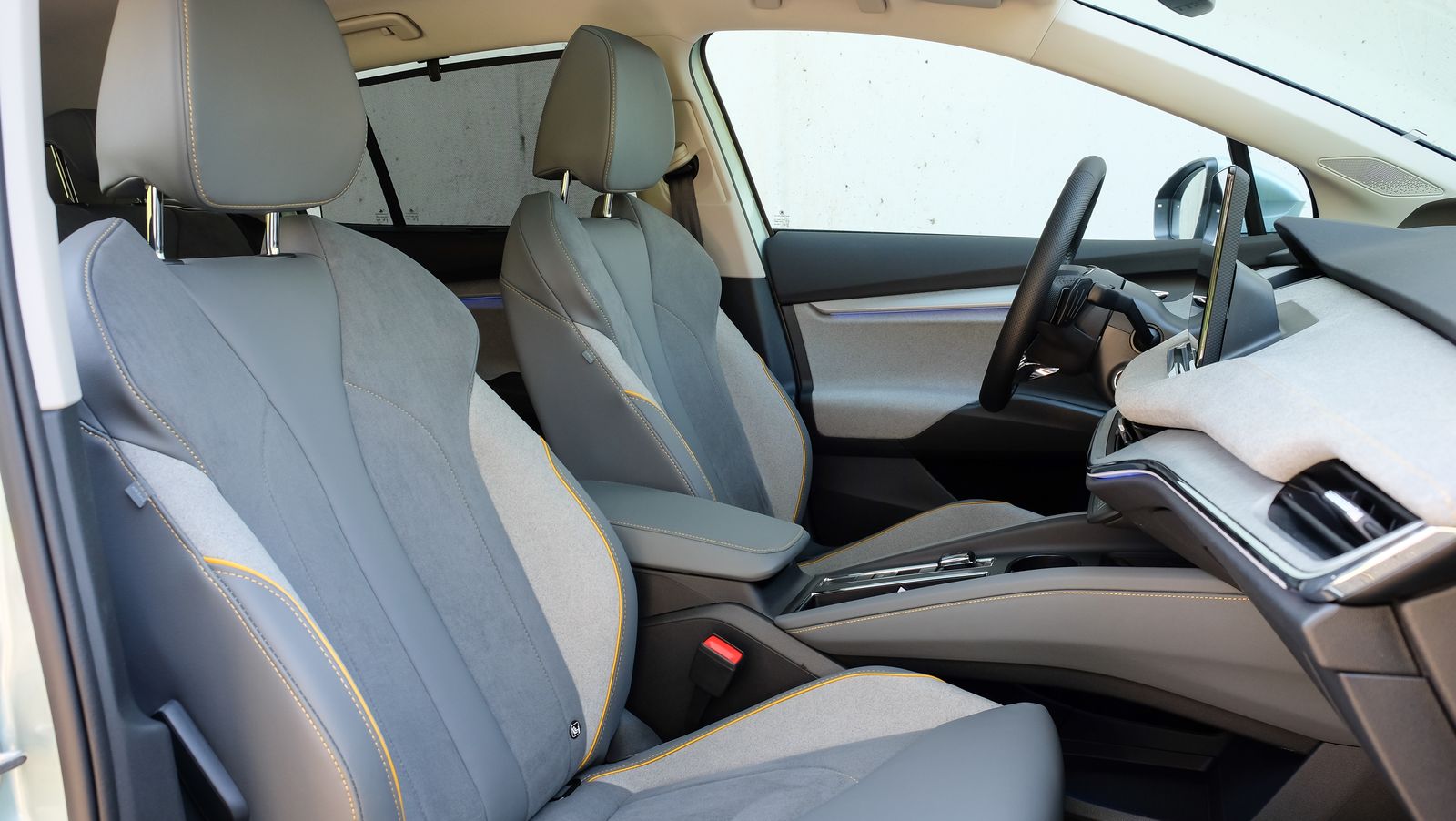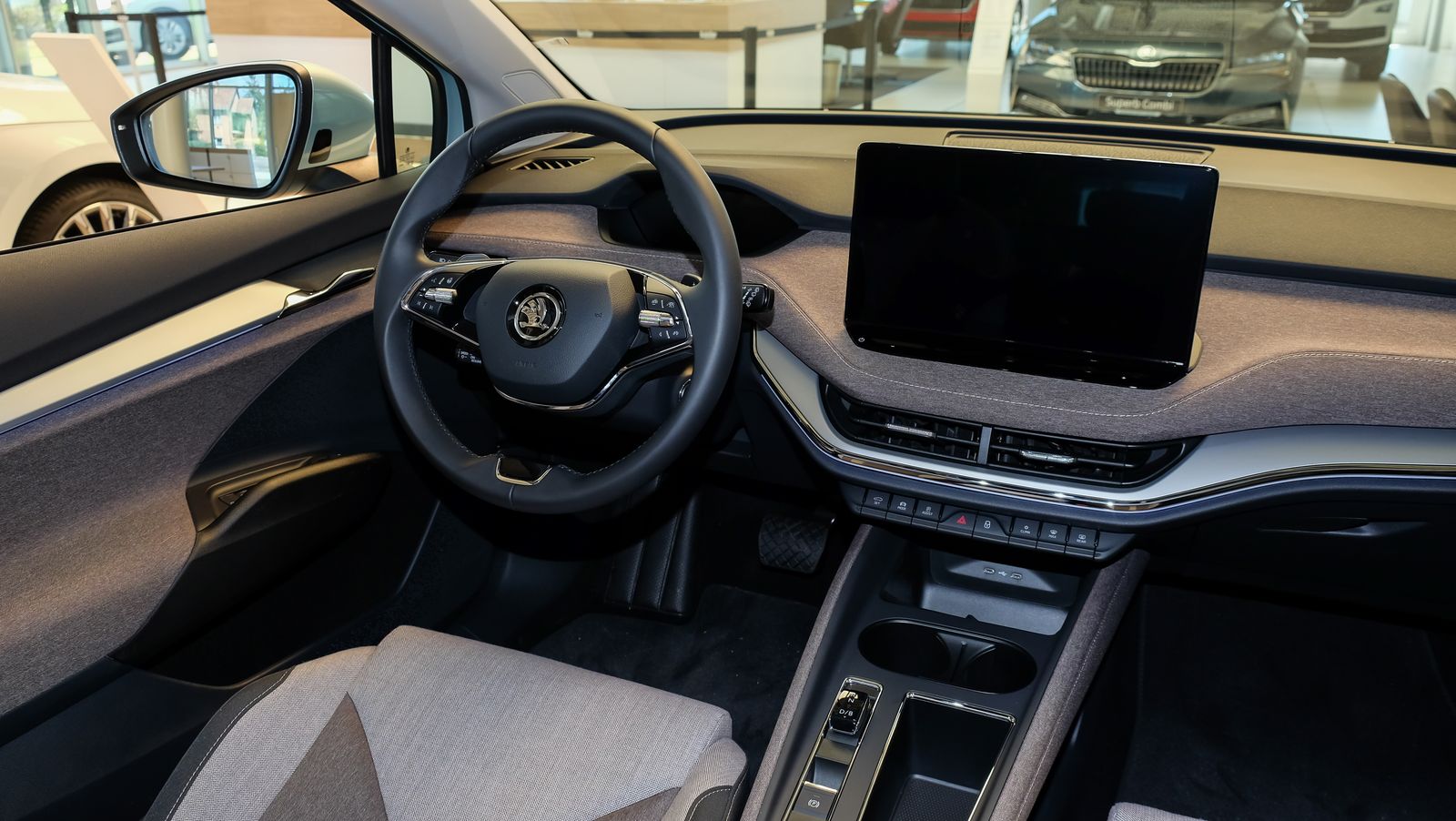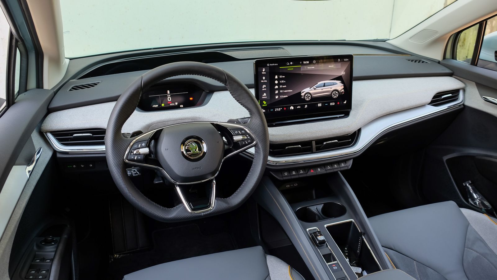Az előszériás autók mind a csúcsakkus, de hátsókerékhajtású példányok voltak, különböző felszereltséggel, eltérő belső hangulatokkal, vagy ahogyan a Skoda mondja, "Design Selection csomagokkal". Studio, Loft, Lodge, Lounge, Suite és EcoSuite választható. Az alkalmazott anyagok egyrészt a fenntarthatóságot és a környezetvédelmet szem előtt tartók - például a Lodge Design esetén 40%-ban fenntartható állattartásból származó gyapjú, 60%-ban újrahasznosított PET-palackokból származó poliészter adja az ülések burkolatát, míg a kor divatja szerinti konyak színű bőrkárpitot olívalevél-kivonattal cserzik. A műszerfalra felszereltségtől függően szövet vagy bőrbevonat is kerülhet, különféle cérnákkal varrva, a 13 colos érintőképernyő pedig alapáras.