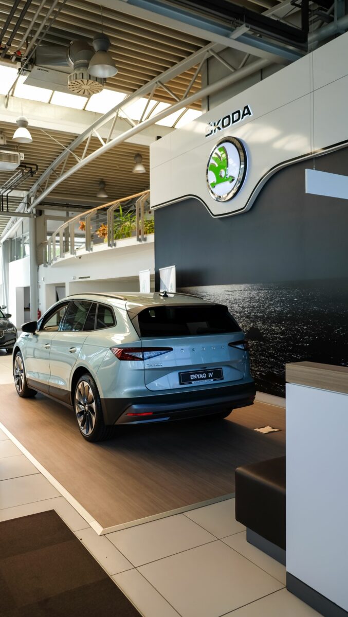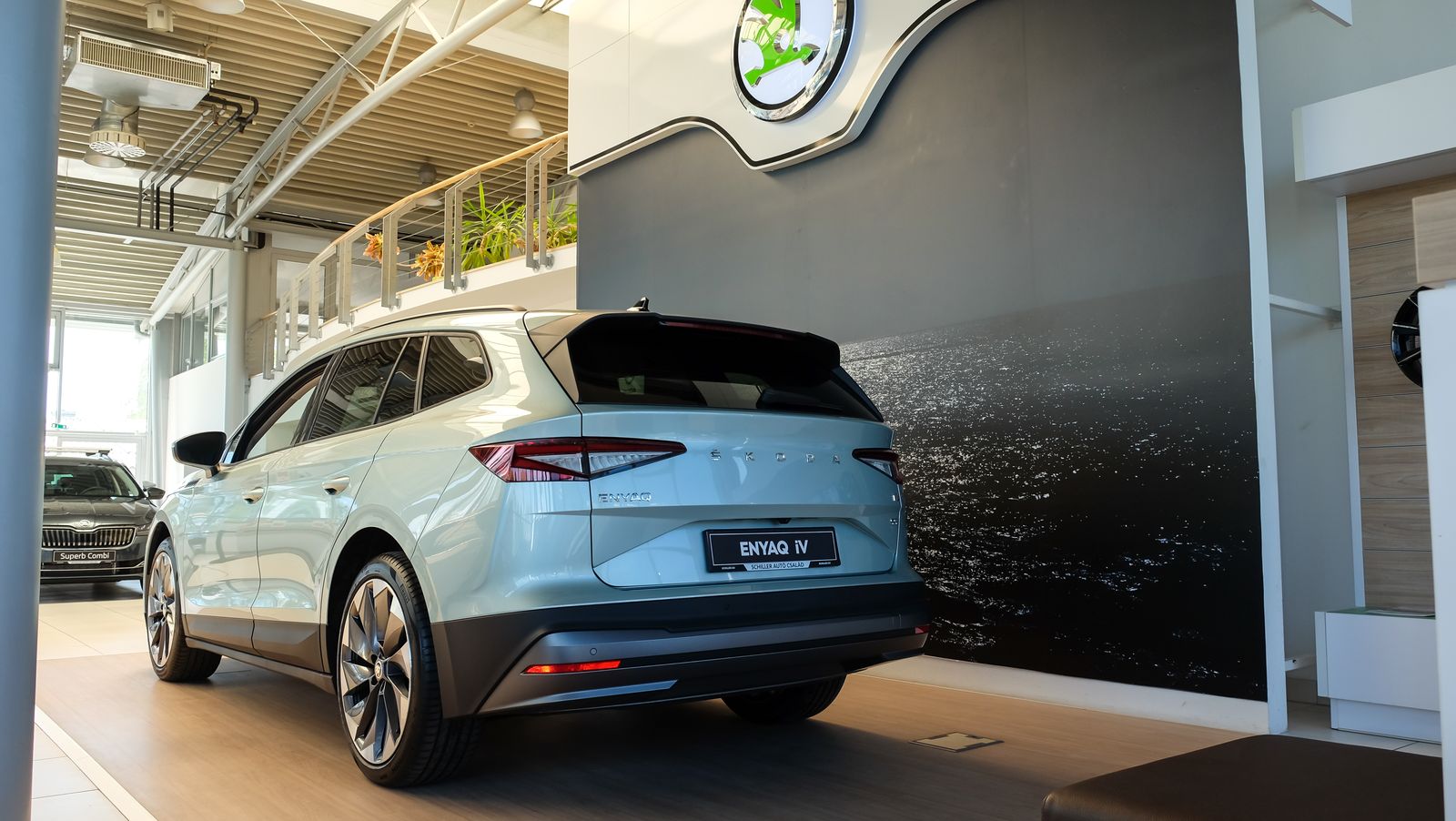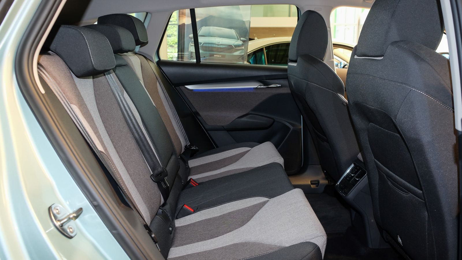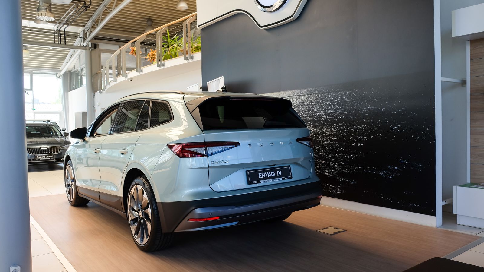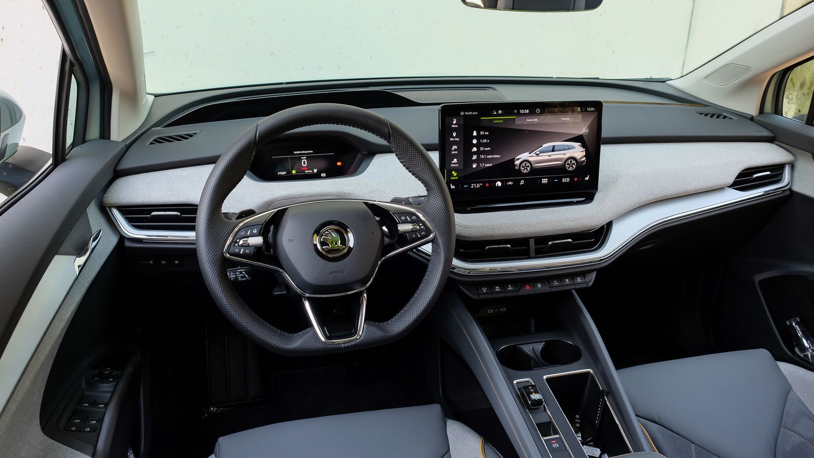 Az előszériás autók mind a csúcsakkus, de hátsókerékhajtású példányok voltak, különböző felszereltséggel, eltérő belső hangulatokkal, vagy ahogyan a Skoda mondja, "Design Selection csomagokkal". Studio, Loft, Lodge, Lounge, Suite és EcoSuite választható. Az alkalmazott anyagok egyrészt a fenntarthatóságot és a környezetvédelmet szem előtt tartók - például a Lodge Design esetén 40%-ban fenntartható állattartásból származó gyapjú, 60%-ban újrahasznosított PET-palackokból származó poliészter adja az ülések burkolatát, míg a kor divatja szerinti konyak színű bőrkárpitot olívalevél-kivonattal cserzik. A műszerfalra felszereltségtől függően szövet vagy bőrbevonat is kerülhet, különféle cérnákkal varrva, a 13 colos érintőképernyő pedig alapáras.