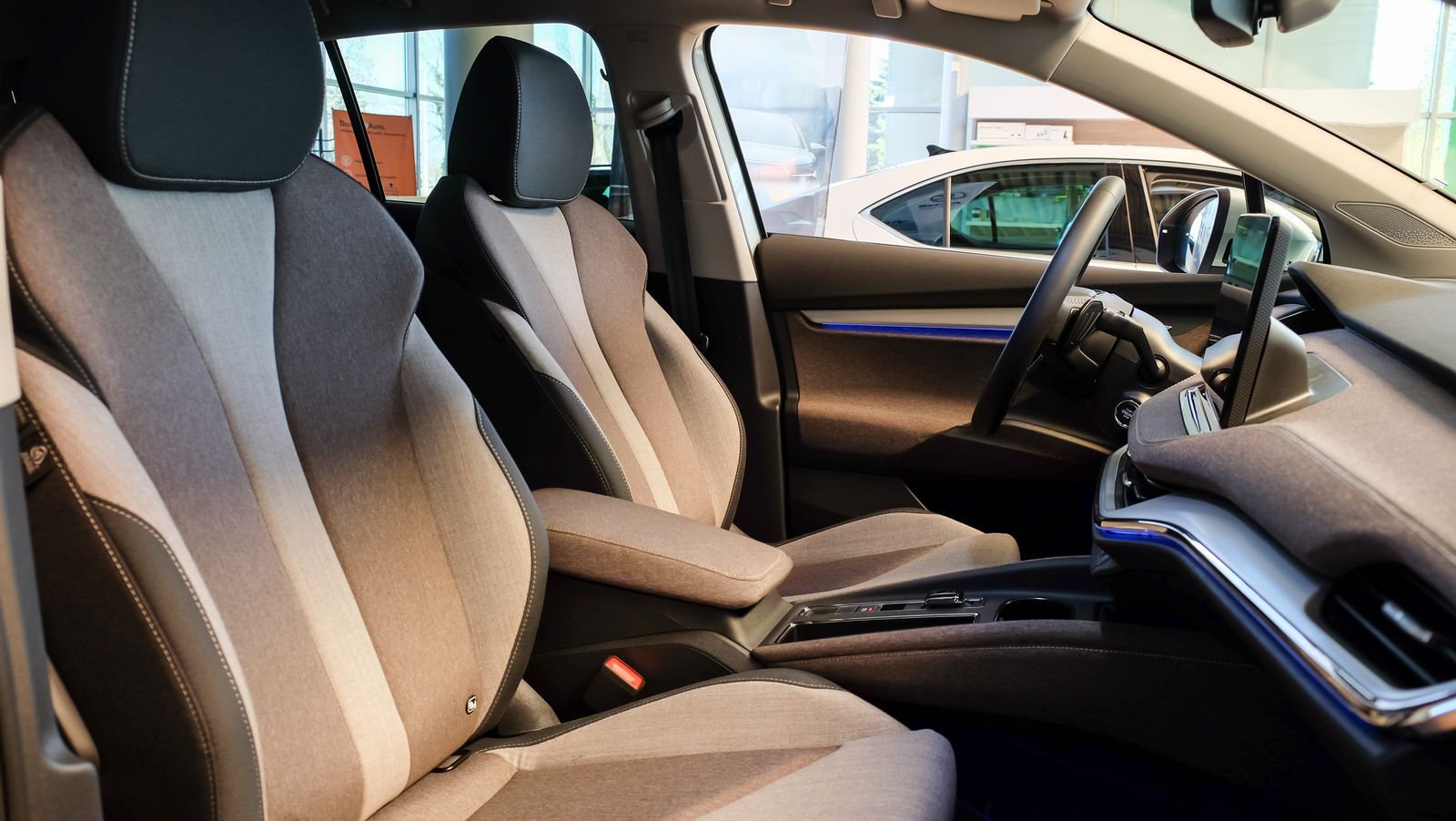 Az Octaviából ismerős vonalak, még jelentősebb textilfelület a műszerfalon. A kárpitok részint újrahasznosítottak, a beltér mégis minőségi