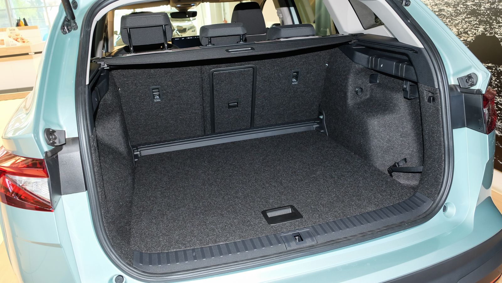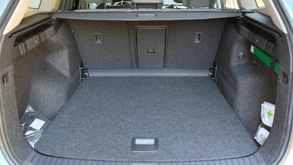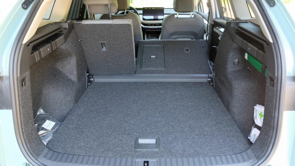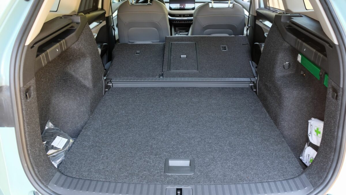 Alaphelyzetben is 585 literes, a hátulról is indítható támladöntéssel 1,71 köbméteres a csomagtér, a bővített tér éppen nem sík padlójú