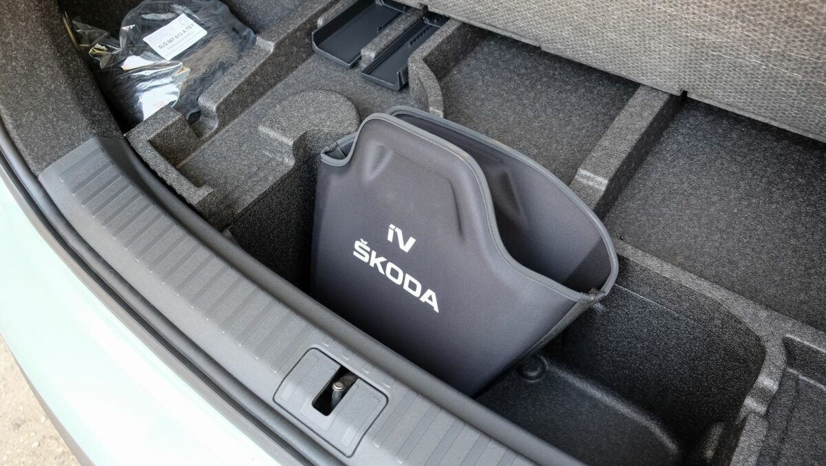 Simply Clever részletekből nincs hiány: sok más mellett esernyő, jókora ajtózsebek, töltőtároló a csomagtér aljában