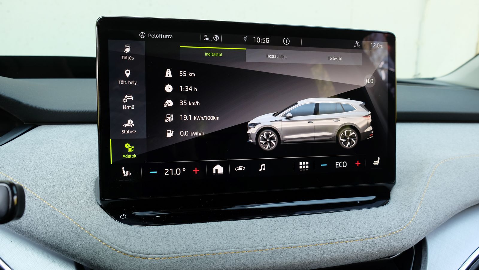 Az extrakínálat gyakorlatilag bőséges, távolságtartós tempomat, sávtartó és parkolóasszisztens ugyanúgy elérhető, mint panorámatető, hátsó oldallégzsák vagy praktikus csomagtér-elválasztó. A tesztkörön tapasztalt 19,2 kWh/100 km átlagfogyasztás egyrészt nagyon közel van a WLTP adathoz, másrészt ezzel még felfele kerekítve is 800 forintos - otthoni töltés esetén adódó - 100 kilométerenkénti "üzemanyagköltség" adódik, ami ugyebár nem egész 2 liternyi benzin vagy gázolaj ára. Ha pedig egyszer-egyszer fizetős helyen kell tölteni, akkor nagyjából 5 literes költséggel számolhatunk. A zöld rendszám a jelenlegi infók szerint az Enyaqhoz hasonlóan tisztán elektromos modellekhez biztosan marad, ahogyan hozzájuk a cégautó-adó fizetése alóli felmentés és a legtöbb nagyvárosban ingyenes parkolás is. Ez alapján mindenki eldöntheti, neki megéri-e a magasabb vételár, pláne úgy, hogy az Enyaqba formája és vezethetősége miatt is bele lehet szeretni. És most jöjjön a reklám helye: a