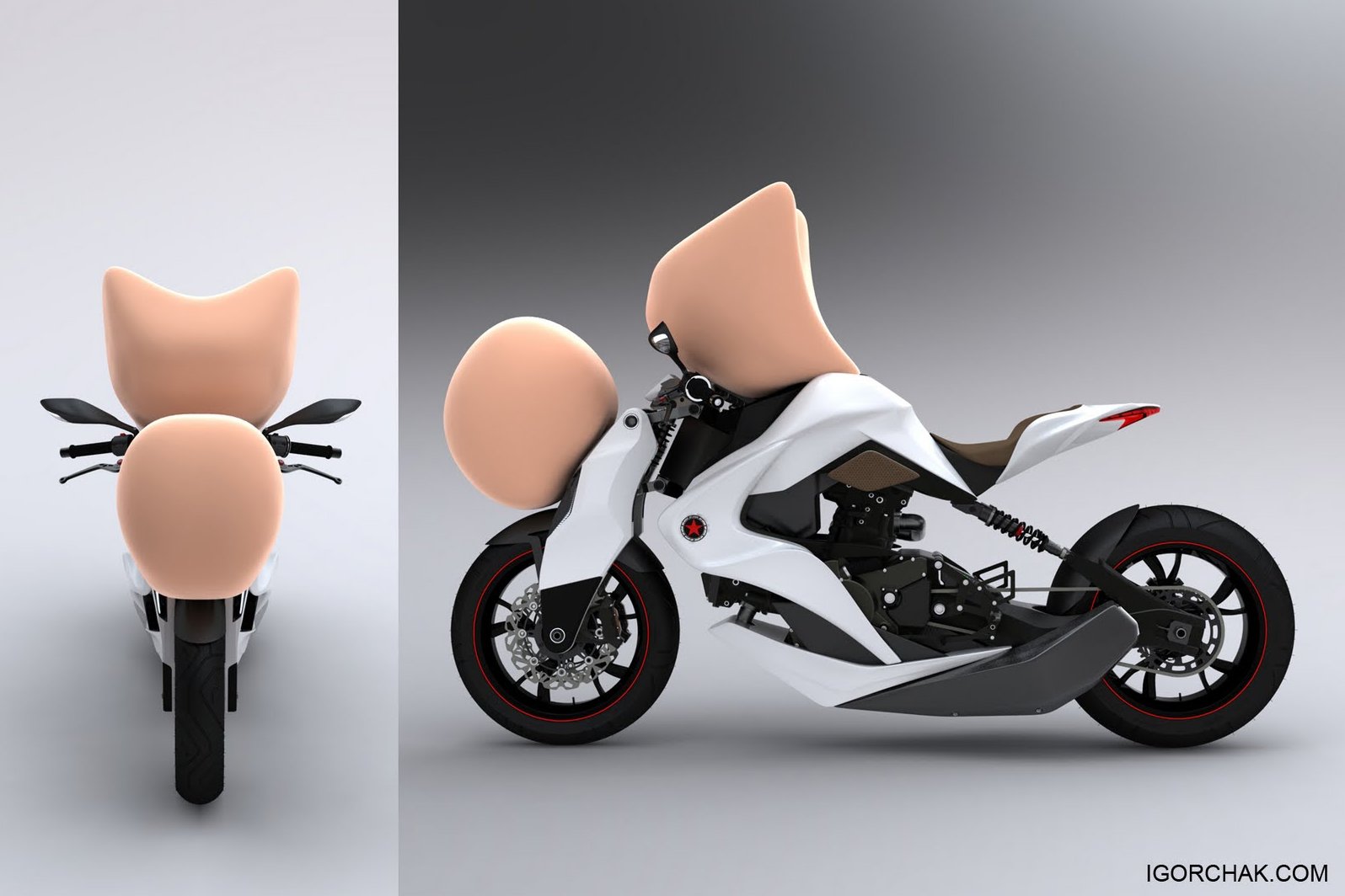 Mindenképp érdemel egy említést a Vlagyivosztokban született, majd Japánban és Egyesült Államokban felnőtt Igor Chak[/url], aki nemrég prezentálta legújabb tanulmánymotorját, az 1929-es szovjet IZS-1-es 2012-es hibridhajtású újragondolását, melyen szintén légzsákok vigyáznak a lovas testi épségére.