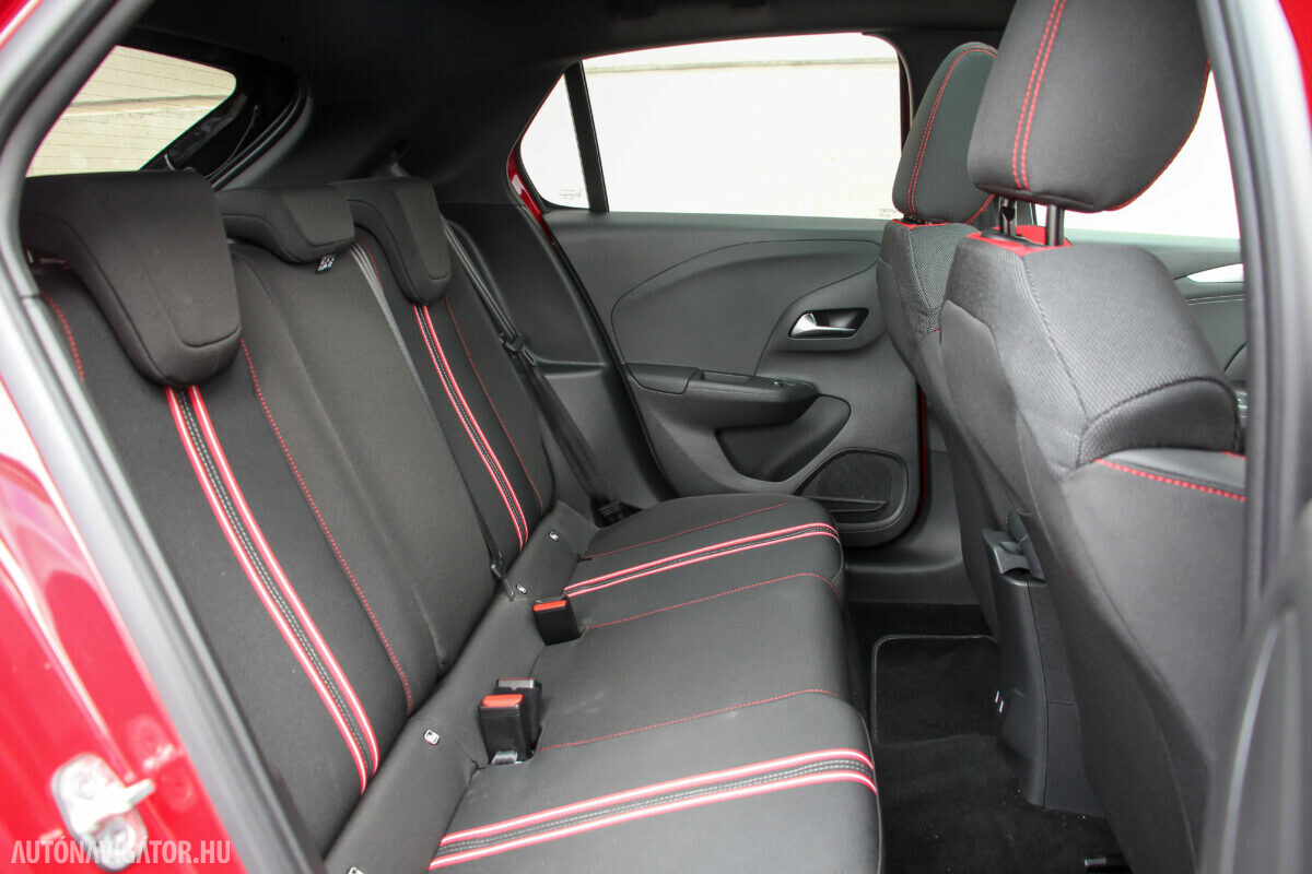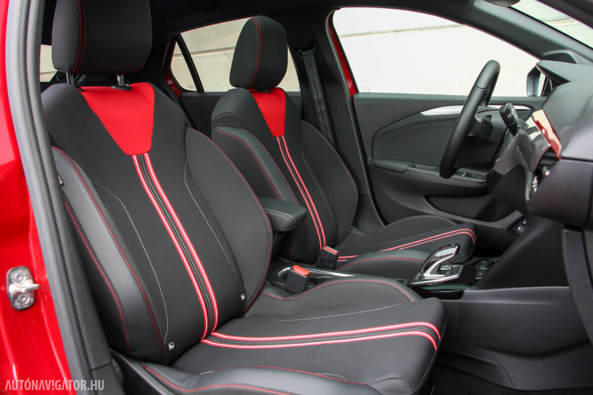 Dögösnek persze dögösek a 17 colos, öt duplaküllős felnik, de dögösség a formának alapból és az utastérbe is jutott. A GS Line piros csíkozású sportülései nem csak ránézésre, tartásukkal is jók, remek fogású a lapított aljú kormánykerék is, ami viszont automata váltó esetén nem kap fűtést, pedig az egy fontos extra a kézi váltósok esetén. Hasonló furcsaság, hogy kulcs nélküli nyitás-indítás esetén csak a sofőrajtóhoz kerül érzékelő, azt pedig mind a záráshoz, mind a nyitáshoz meg kell érinteni, nem reteszel automatikusan. Továbbá kissé groteszk, hogy a sofőr és az utas oldalára is került tekerőgomb a hőmérséklet szabályzásához az automata klíma paneljén, ám a rendszer valójában egyzónás. Igaz, ezeknél nagyobb hibája nincs a Corsának, opciós - automata váltóval - araszolófunkciós távolságtartós tempomatjával, vezethetőségével és utazási komfortjával egészen nagyautós, a 8 fokozatú automata váltóval autópályán is csendes, a GS Line pedig már alapáron is jó fényerejű LED, 160 ezer forintos - elenyésző - felárért pedig automata és vakításmentes reflektoros, még jobban vetítő LED mátrix fényszórót ad.
