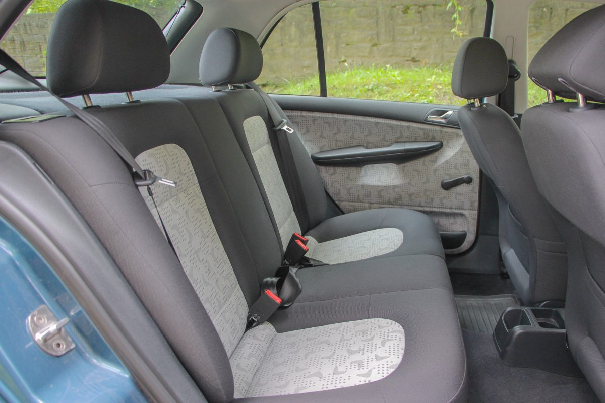 Egy megoldandó hiba akadt azért, mióta tulajt cserélt. A féklámpa kapcsolója adta meg magát, fékezésnél nem világított egyik sem, de szerencsére otthon cserélhető, főleg annak, aki szeret ilyesmivel babrálni. Mivel ez az autó 2003-ból való, és akkor még nem volt követelmény az új autóknál az ABS és a kipörgésgátló, tesztalanyunkban sincs, pedig szép extrafelszereltségeket kapott. Többek között klímás, van fedélzeti számítógépe, meg teljes értékű pótkereke, ennek tekintetében furcsa, de mondhatni hazai szokásnak is, hogy a biztonsági extrákat már nem ikszelték be anno. Belül sem a puritán fajta, kétszínű az ülések kárpitozása, és rettentő jól bírják az éveket, sehol egy kopás, a vezető ülésén is éppen csak egy ránc látható. Nagyon jól tartanak elöl, és hátul is, ahol még szinte táncolni is lehet, akkora a lábtér, csak ki ne koptassuk a gyári, dedikált gumiszőnyegeket.