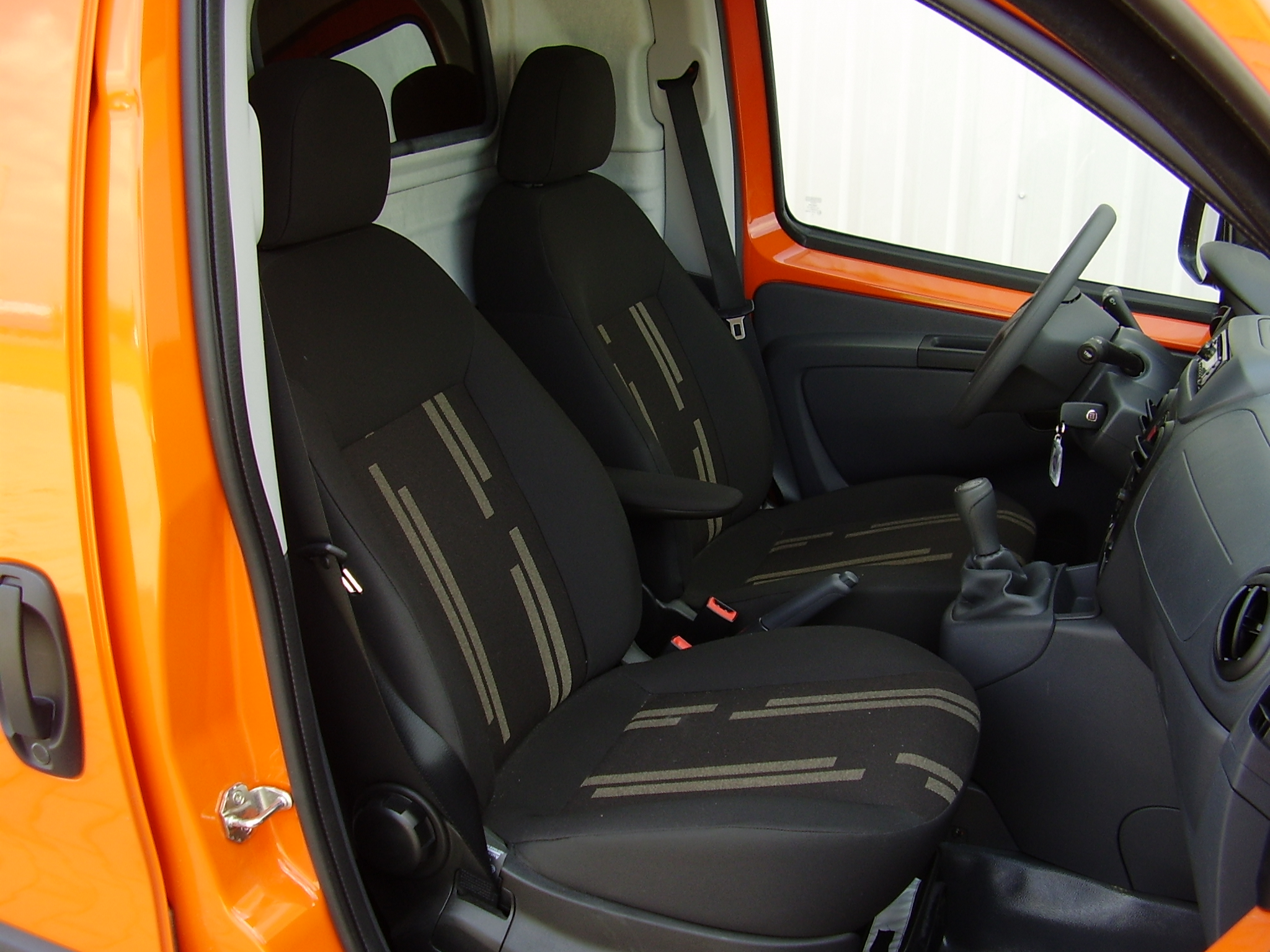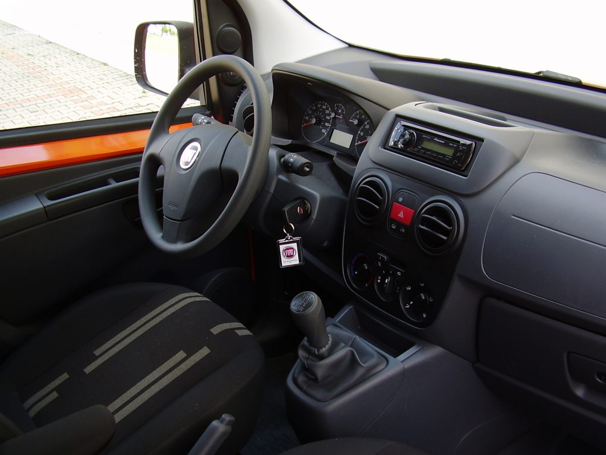 Nézem elölről. Nézem oldalról. Nézem hátulról. Ennek ellenére sehogy se tudok rájönni, hogyan sikerült olyan sok hasznos teret kialakítani 3,9 méteres hosszon, amit a Fiat-PSA közös fejlesztésű kis áruszállítójánál sikerült. Jelen esetben a Fiat Fiorino Qubo névre hallgató személyszállító változat nem enyhén, hanem nagyon is túlméretezett első lökhárítóval indít, amely egyrészt a gyalogosvédelemnél hoz jó pontokat, mint könnyen deformálódó gyűrődőzóna, másfelől a hűtőnek ad helyet. Ezt követi egy kurta motorháztető, amely a kötelező karbantartáson kívül nem sok mindenre ad lehetőséget. Rögtön ezután indul a meredek szögben álló szélvédő, amelyet egy normál- majd egy tolóajtó követ, és a kategóriában elengedhetetlen doboz végződés. Hirtelen felfelé forduló ablakvonallal és fekete üvegbetétes hátsó ajtóval próbálták emészthetővé tenni a formát; annyit elértek, hogy rengeteget kitakar a C oszlop a külvilágból.