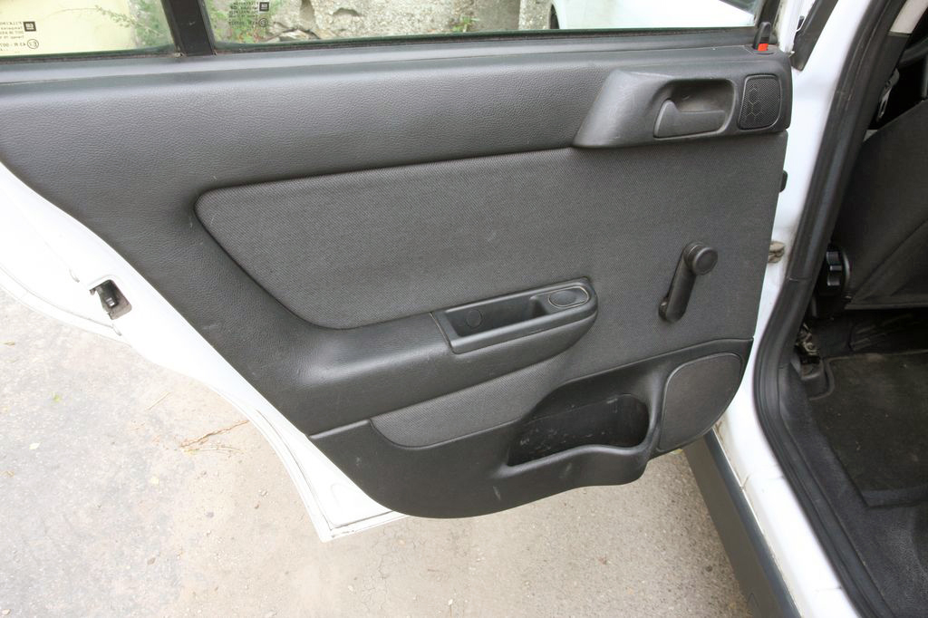 Maradva az olcsó szóvicceknél, sajnos dohányzó kocsival van dolgunk, ez takarítás után is tetten érhető, bár már a kritikus orrúak számára sem nyomasztó mértékben. Ha azonban csak ennyire elhasznált kocsikban utazhatnánk vasúton, bizonyára mindenki szívesebben választaná a kötött pályás közlekedést. Az ülések ugyanis kifejezetten jó állapotúak, kalapemelés jár az Opelnek, mivel még a sofőr széke sincs kiülve, tart. A kárpit egyedül azon, az ülőlap külső szélénél van kikopva, érthető, hiszen ki-beszálláskor ott kapja a legnagyobb terhelést. Koszosság szempontjából is a vezetőé a legtöbbet látott, de az sem vészes, miként a sofőr ajtóbehúzója sem rosszabb annál, mint amit fele vagy akár negyed ilyen mértékű futásnál is el tudnánk fogadni. Láthatóan használt a jobb oldali első ülés is, hátul azonban vélhetően nem sokat utaztak ebben a kombiban, ott az ülés szinte gyári állapotú. Pedig nem rossz ott sem ücsörögni, hely bőven van, a kevéssé formázott padon akár három felnőtt is jól férhet el egymás mellett, ekkora láb- és fejtérnek pedig sok mai kompakt modellnél is örülnénk.