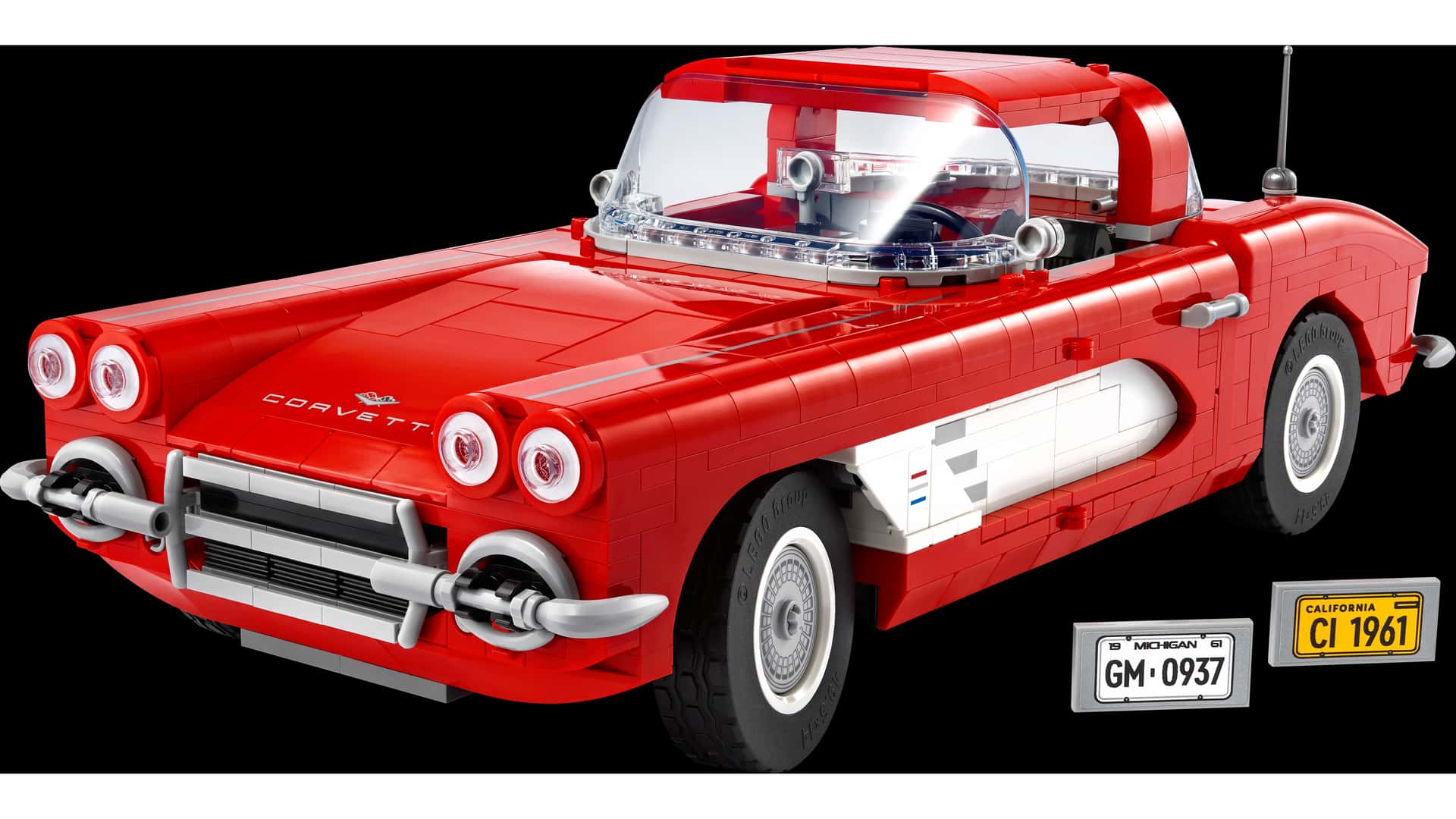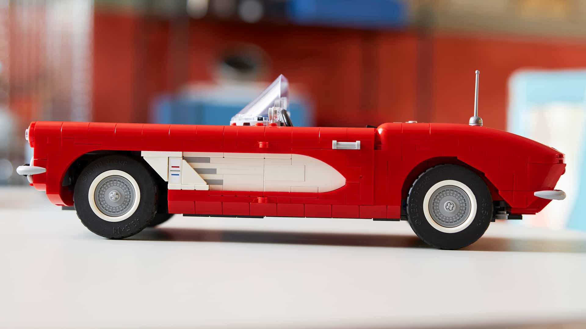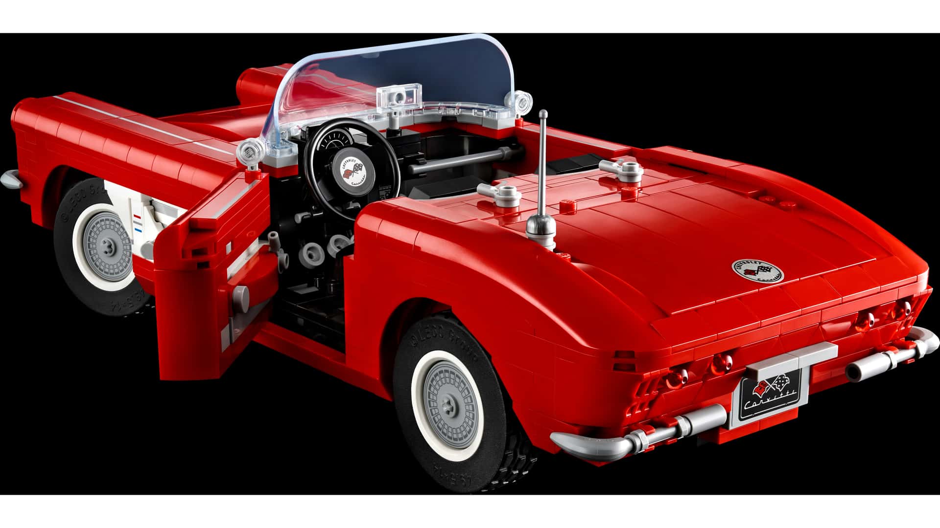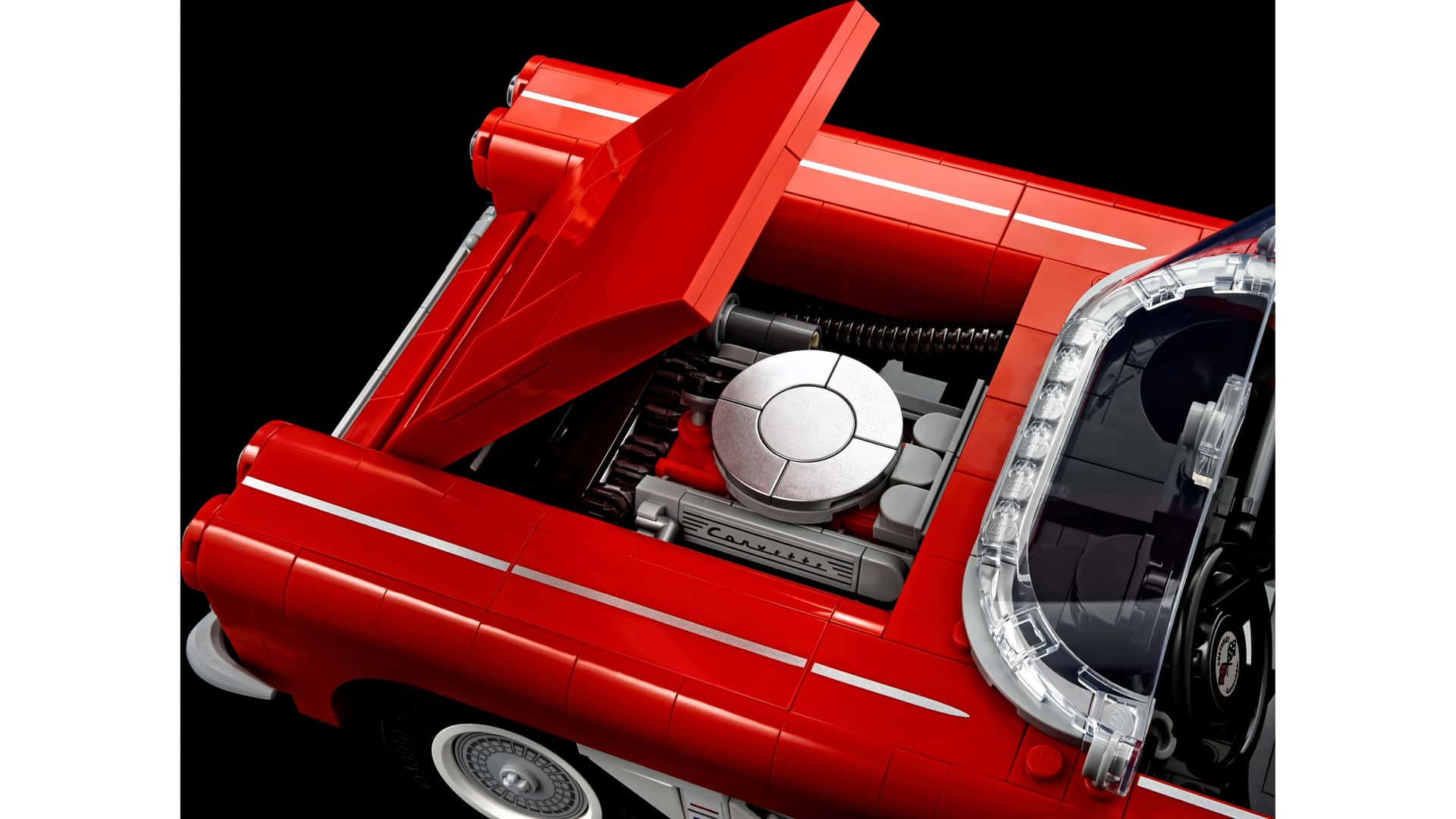 A Corvette a nagyobb Legók közé tartozik, a kész autó hossza 32, szélessége 14 centiméter, maximális magassága éppen egy deciméter. A 10321 számon megjelenő készlet viszonylag részletgazdag, az utastérben a pedálokat, a rádiót és a középső visszapillantó tükröt is megformázták. A Chevy-ről egy mozdulattal eltávolítható a tető, ilyenkor a könnyedén hozzáférhetővé válik a kormány, ami az apró változatban is fordítja a kerekeket. Emellett az ajtók, a csomagtartó és a géptető is nyitható, utóbbi alá érdemes bekukkantani. A motor kidolgozása is részletes, a blokk hűtőventillátora pedig még forog is.