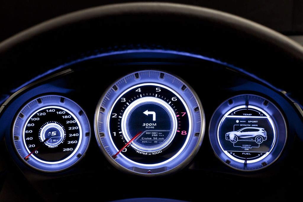 Futurisztikus műszerfal világítással, sportosan vágott aljú kormánnyal, jövőre ér a szalonokba a CX-5