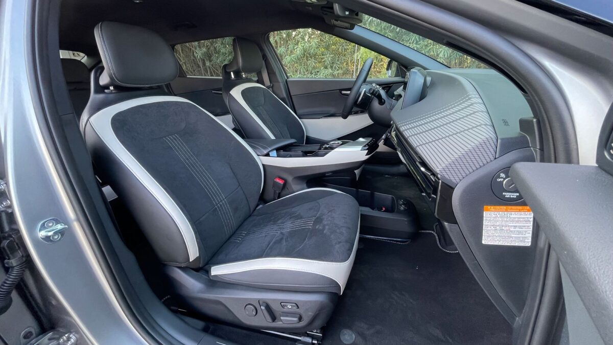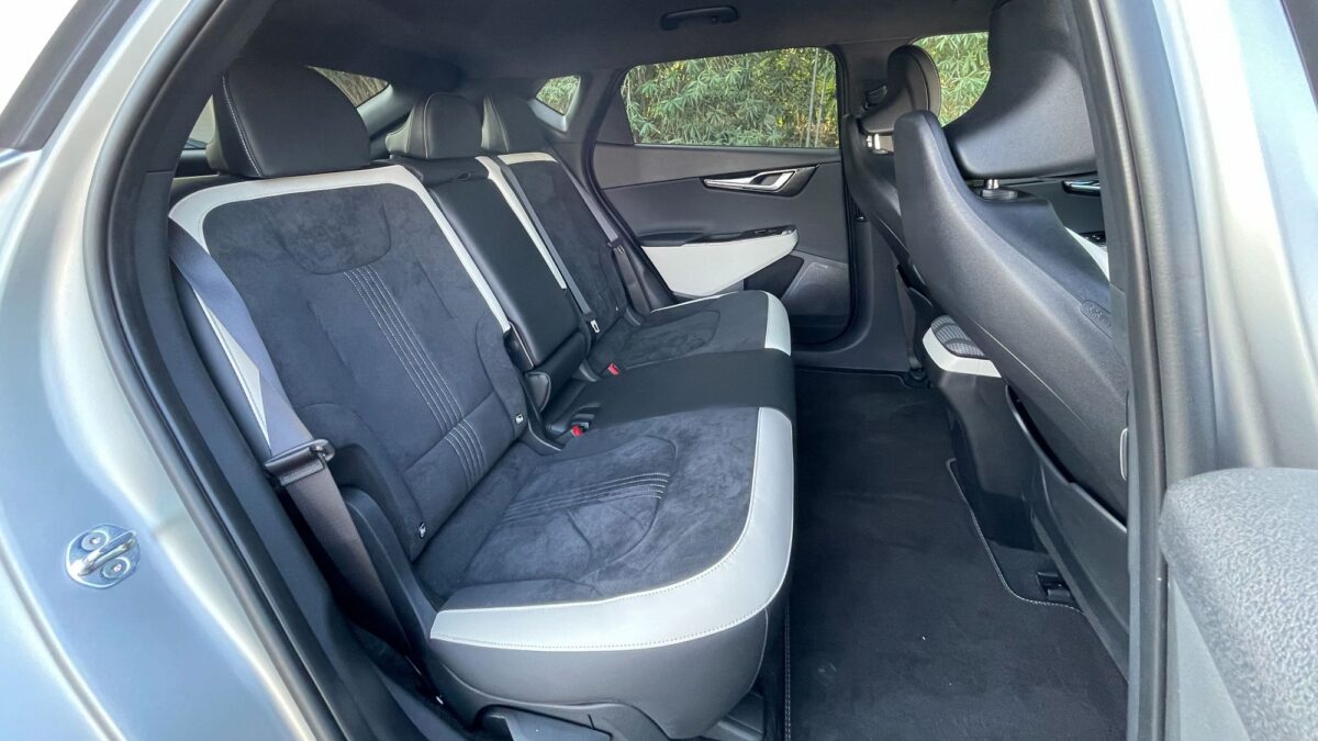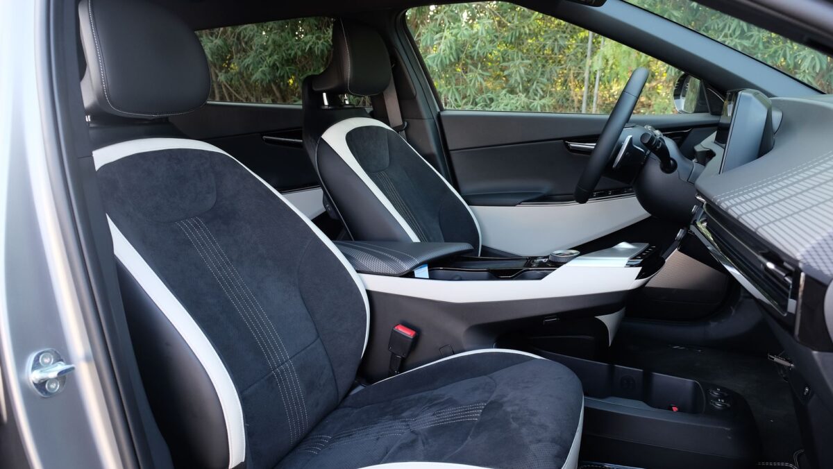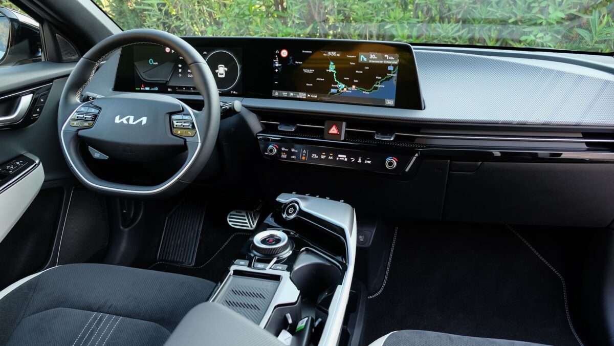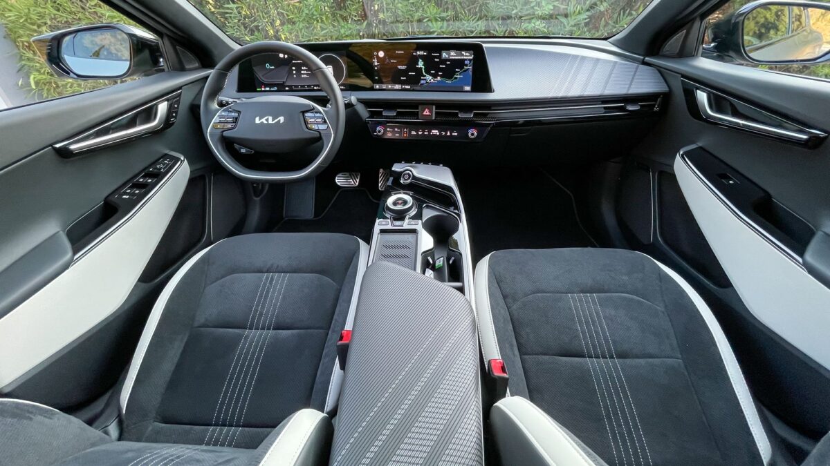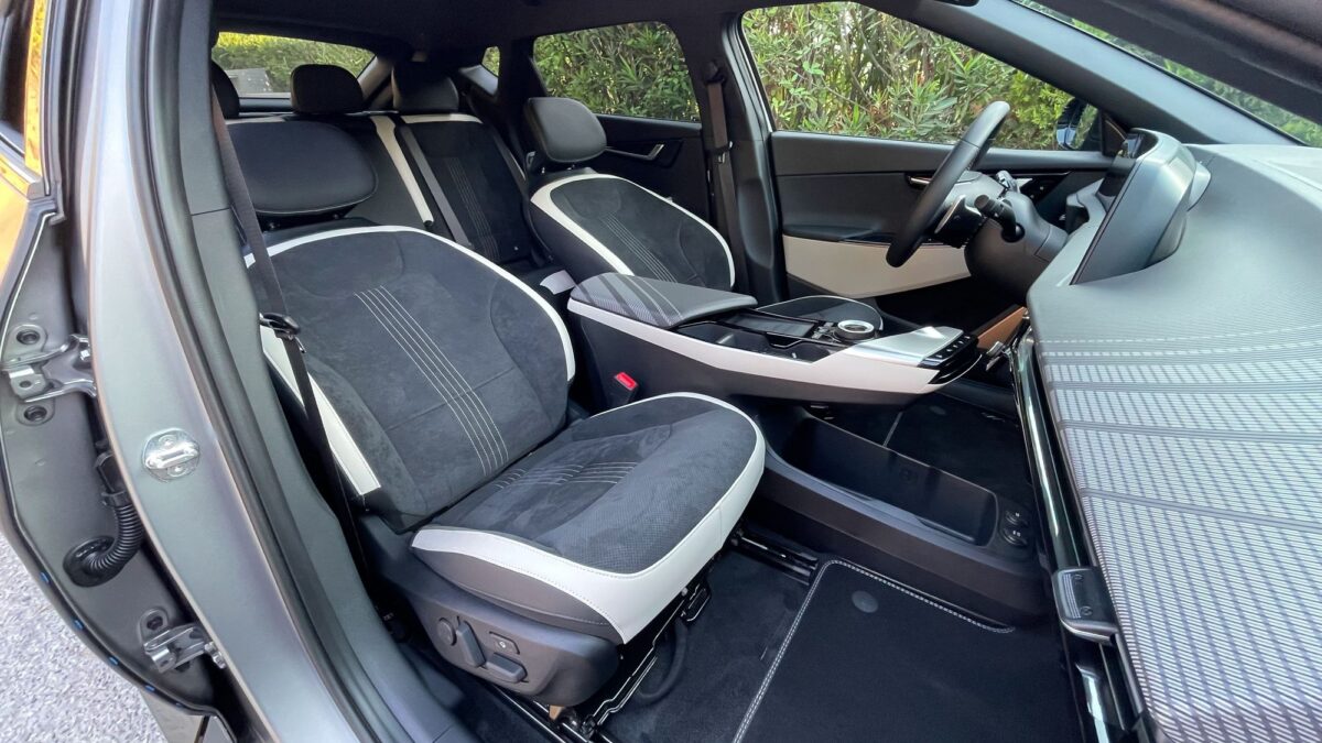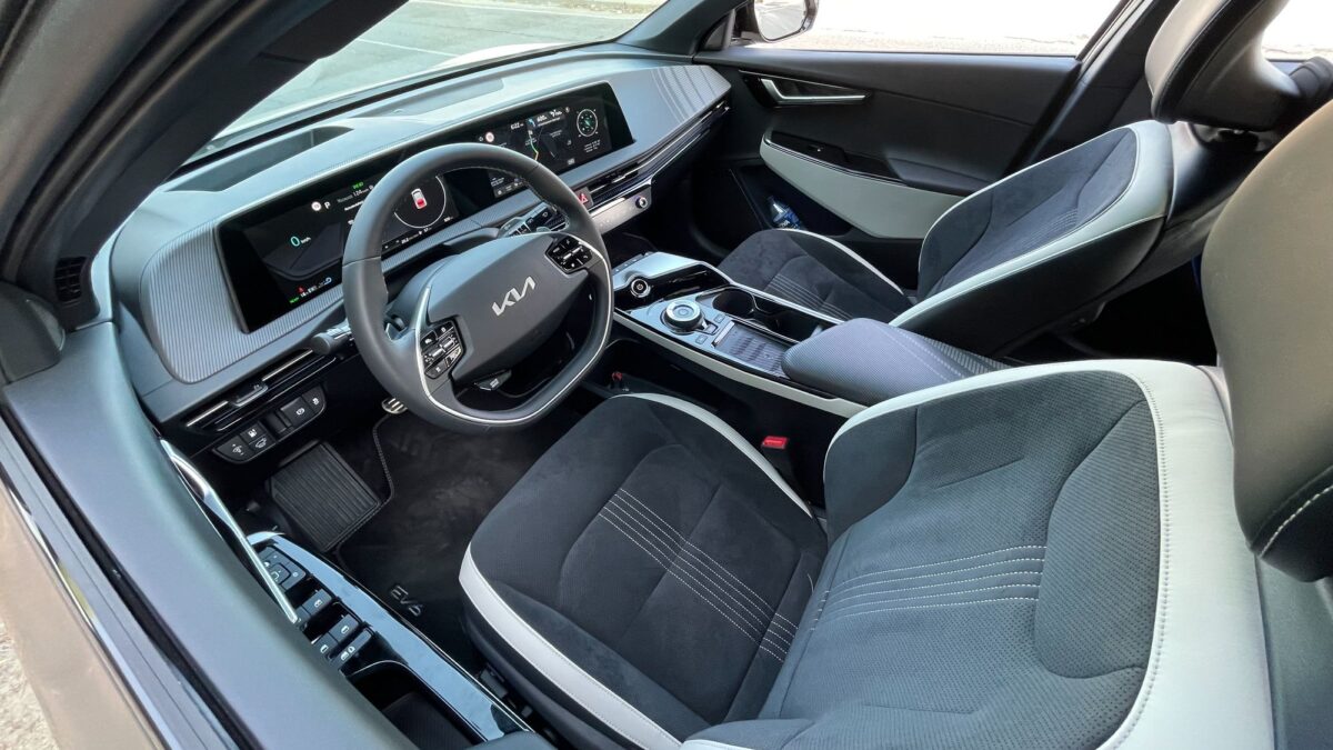 Az EV6 már a formájával is minden eddiginél több tekintet vonz, fotózás közben még sosem jött oda ennyi ember, menet közben sem integetett még elismerően ennyi autós, mint most. A forma tehát telitalálat, tényleg elképesztően dögös. Az utastér óriási és valóban prémium minőségű. A sofőr előtti 12,3 colos – változtatható képű – ívelt kijelző és a középkonzoli érintőpanel is szép felbontású és grafikájú, a klímapanel valódi tekerőkapcsolókat és érintőgombokat is ad, ilyenekkel vezérelhető az első ülésfűtés és az ülésszellőztetés is – a már a második felszereltségi szinttől járó hátsó ülésfűtés az ajtókra tett hagyományos gombokkal. Igényesen flokkoltak a palacktartós ajtózsebek, méretes az első ülések közti könyöklő alatti rekesz és a kesztyűtartó is, a hátsó lábtér pedig még a luxusautókénál is nagyobb, ráadásul az elektromos első ülésállítással az utasülés hátulról is „előreküldhető”.