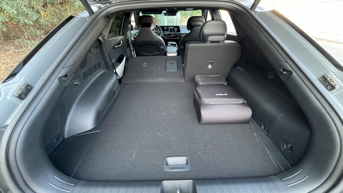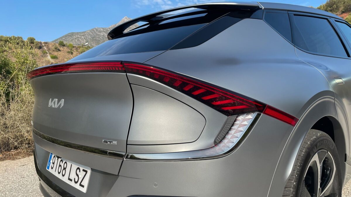 És még mindig van a Kia zsebében néhány ütőkártya, az egyik a hatékonyság, a fedélzeti számítógép szerint még dinamikus vezetés mellett is simán hozható 15-16 kWh/100 km körüli fogyasztás (a 325 lóerős monstrummal!), amivel ki is jön a Kia által ígért 500 kilométer feletti hatótáv. Igaz, ezen sem kell meglepődni, a márka korábbi villanyautói is hozták ígéretüket, itt pedig van még néhány újítás: például az összkerekes verzió is alapvetően csak hátul hajt, ha pedig kell az első hajtás is, 0,4 másodperc alatt aktiválódik – csak ezzel 8%-kal apasztották a fogyasztást. S ne feledjük, a két villanymotor nem csak jobb hajtást, hanem jobb visszatöltést is ad. Egy másik érdekesség, hogy szériaautóban itt találkozhatunk először a kerékcsapágyakkal egybeépített féltengelyekkel, ami egyrészt masszívabb, másrészt tömegcsökkentést és jobb kezelhetőséget is hozott.