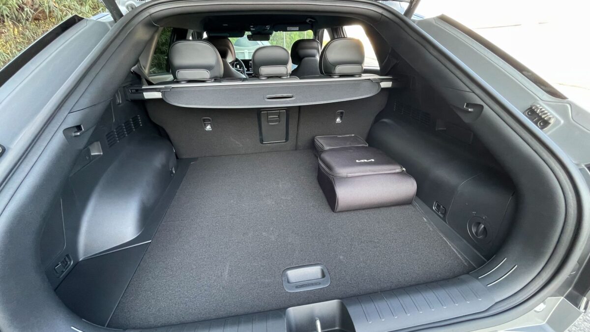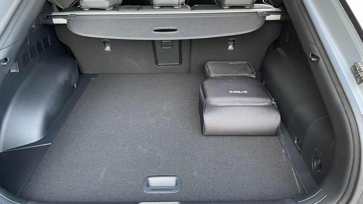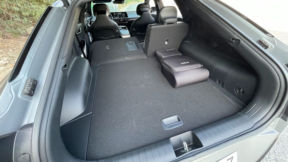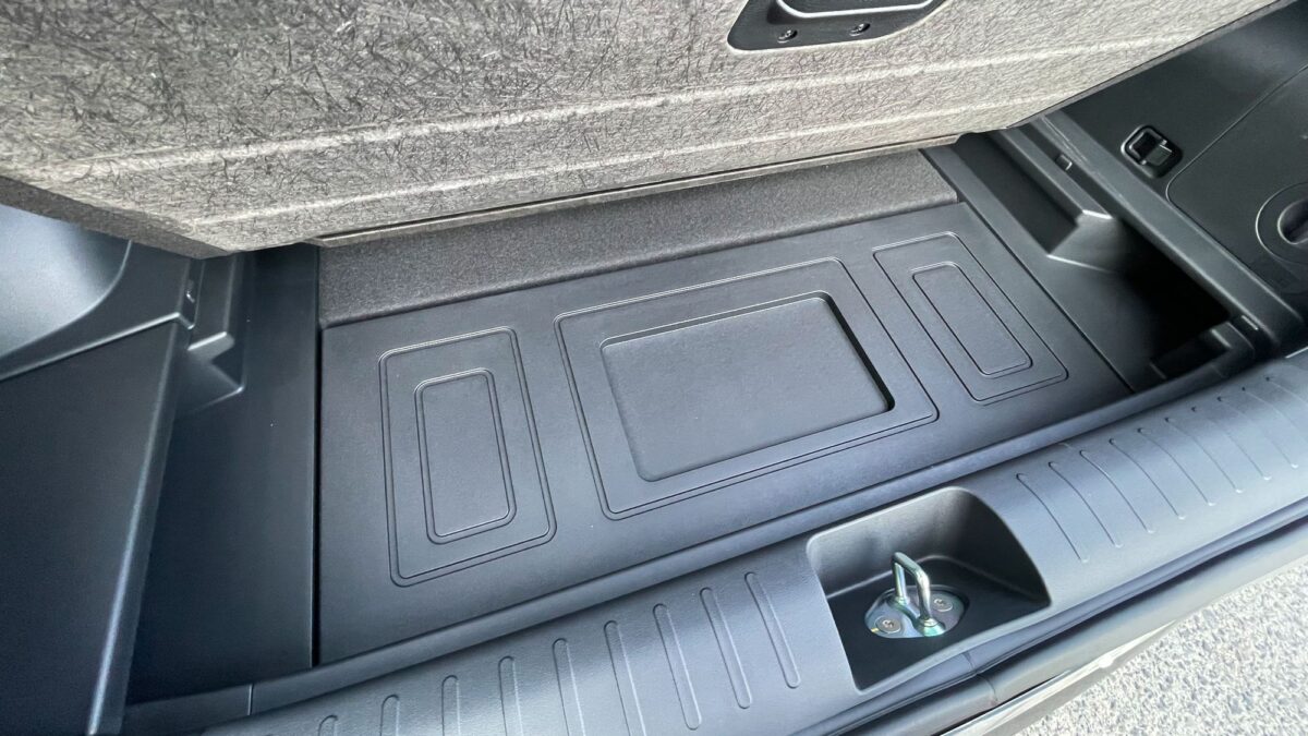 Hátul padlórekesz, elöl frunk várja a töltőkábelt, igaz az összkerekes mindössze 20 literes első rekesze szinte csak jelzésértékű