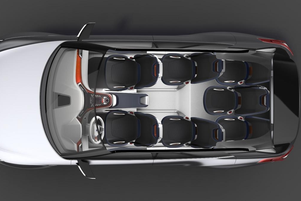 Hétüléses, de nem a megszokott kiosztással, hanem a hetedik ülőhely sorok közötti tologathatóságával. Az övek természetesen az ülésekbe építettek