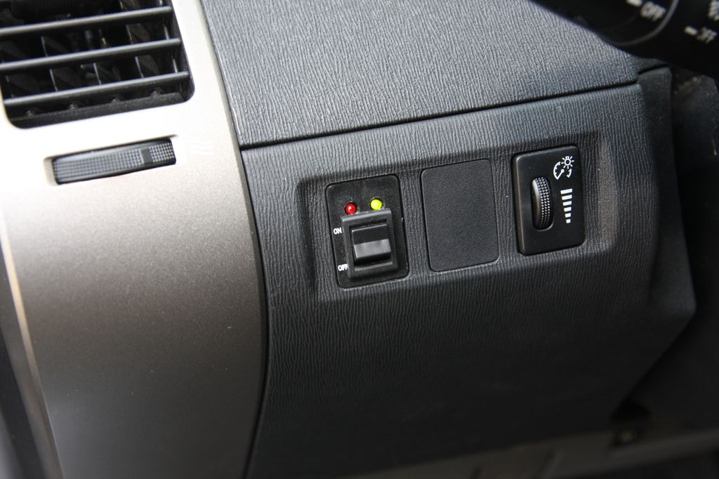 Az utastérben mindössze egy, a kiegészítő akkumulátort az autó elektronikai rendszeréről leválasztani képes billenőkapcsoló és a kiegészítő akksi töltöttsége mellett a vele megtehető távolságot mérföldben és kilométerben is mutató kijelző emlékeztet a konnektorból tölthetőségre