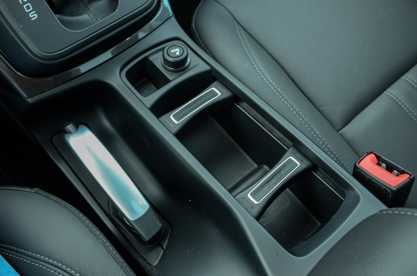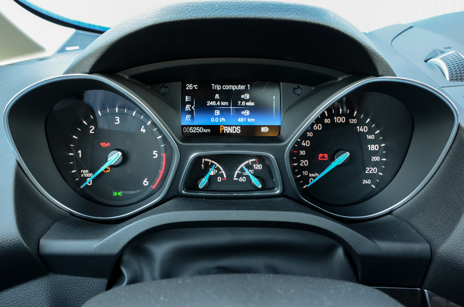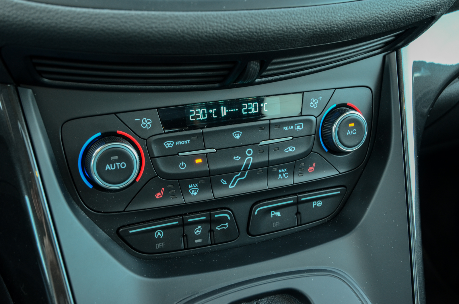 Leginkább középen más. A belső tér egy ponton módosult a legnagyobb mértékben. A középkonzolt szinte teljes egészében újratervezték, ami jót tett a kezelhetőségnek. Az előző modellben már annyi gomb volt, hogy sokkal inkább repülőgépben érezte magát a vezető, mintsem autóban. A mostani dizájn letisztultabb lett, a nyomógombok nagy része eltűnt és érintőképernyős, 8 colos kijelző vette át a helyüket. Egyetlen hátránya ennek is van, túl mélyen ül a műszerfalban, ami miatt nehézkes a kezelése és az érintésérzékenysége is lehetne jobb. Ezen kívül a kijelző alatti gombsor túlságosan felfelé néz. Ez napsütéses időben rontja az olvashatóságát, többször a fejemet nyújtogatva kellett ránézni, hogy melyik gombra mi van írva. Este meg pont a fordítottja jött elő, hiszen nem kaptak háttérvilágítást, ami miatt ismét nehézkessé válik a kezelésük. Módosult továbbá a kormány, amely nagyon jó fogású és finom a bőrözése, a gombok száma ugyanakkor még mindig sok, ami szintén jellemző a Fordokra.