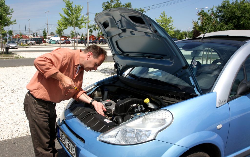 Ahogyan az egy ilyen korú és futásteljesítményű autótól elvárható, a motorházban is minden a helyén, csak némi olajszivárgás, meg a kipufogócsonk feletti megégett hővédőlemez tűnt fel. Ja, és a motorháztető belsejére filctollal felírt olajcsere-jelzés… Az átvizsgálás végén már épp kezdtem elfeledkezni a „problémás francia kocsi” sztereotípiáról, amikor nem sikerült lecsukni a motorháztetőt. Persze, semmi komoly, csak egy elmozdult rugó emlékeztetett arra, hogy a C3 azért nem tartozik a legmegbízhatóbb és legtartósabb típusok közé.