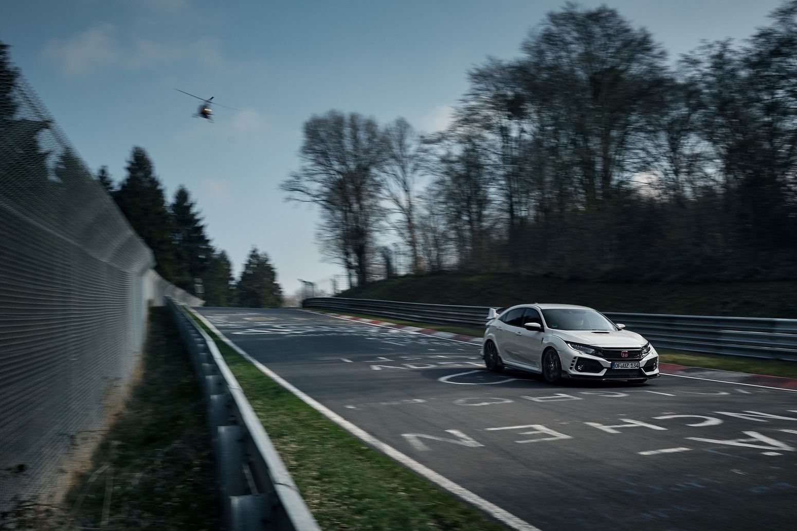 7 perc 43,8 másodperces időt állított be a bukócsövezett, hátsó ülések nélküli Honda Civic Type R tesztautó, ezzel a Volkswagen Golf Clubsport S-t taszította le a trónról