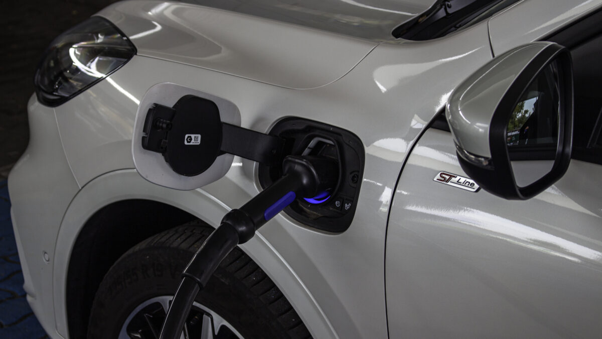 Otthonról, 230V-os konnektorról és az alap töltővel kb. 6 óra alatt tele lehet tölteni nulláról. Ha rendelkezésre áll egy 16 amperes töltő, 3,5 óra alatt. A töltést és a töltöttséget ötletesen, kék LED fénysor jelzi