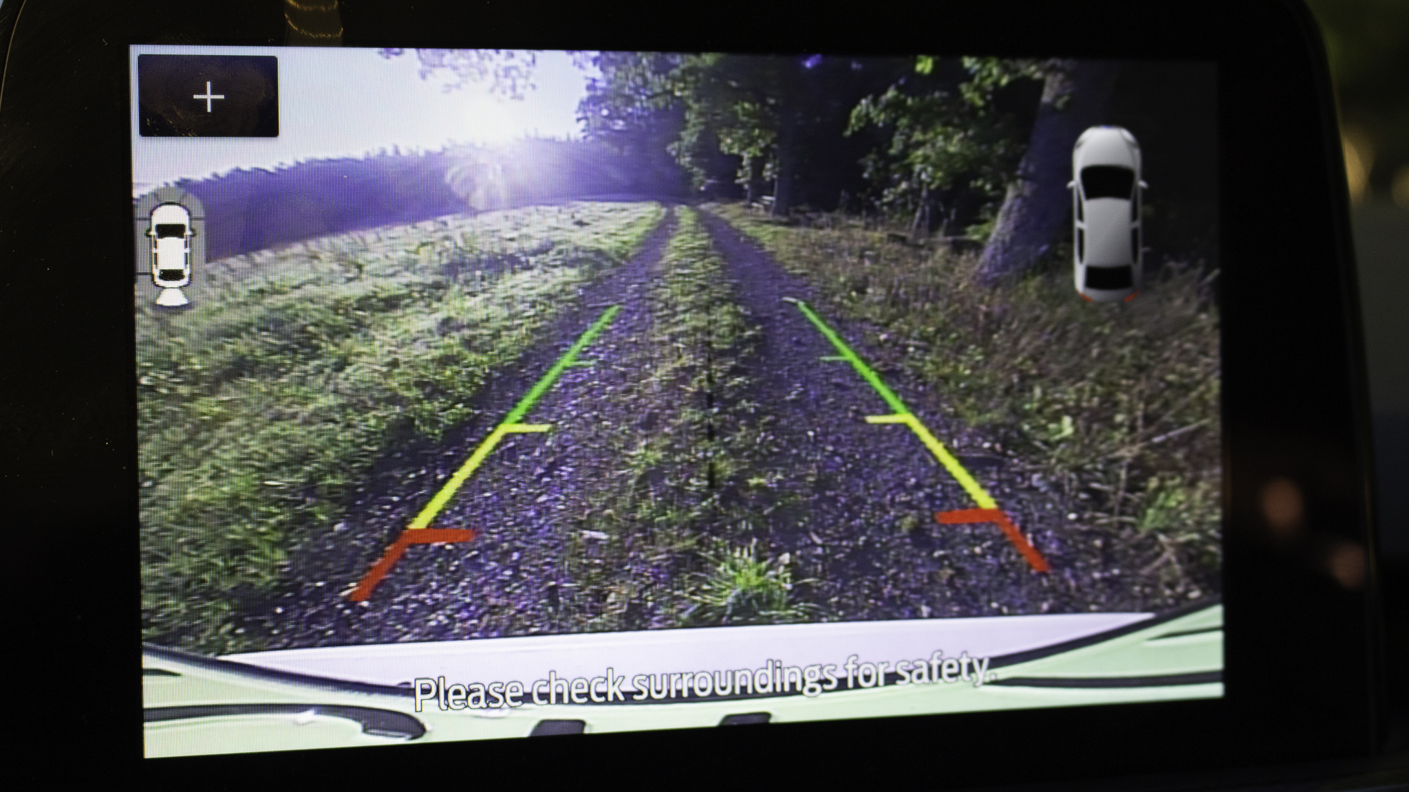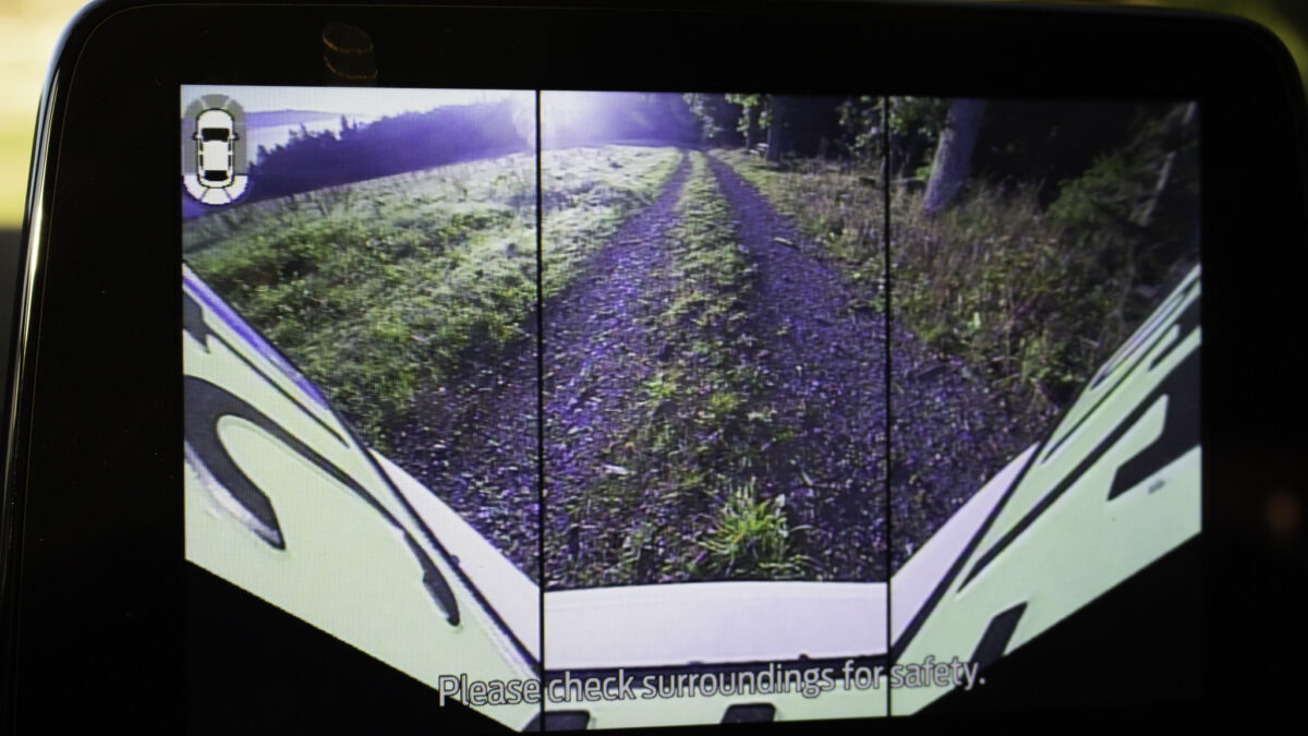 Sokféleképp variálható tolatókamera-képet kapunk, amin keresztül nézve sokkal biztosabban tudjuk manőverezni a cseppet sem kicsi autót