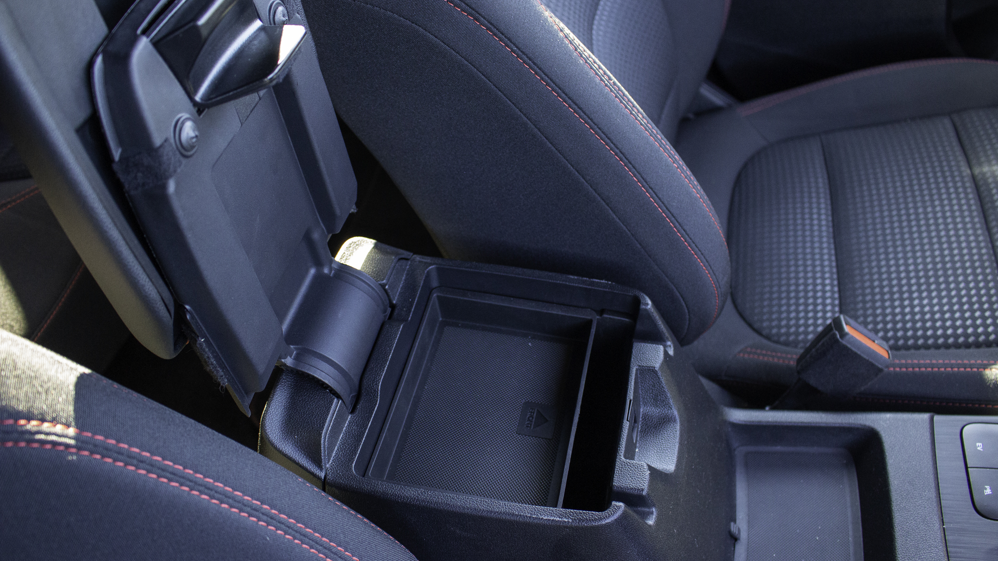 Bár van két rendes méretű kulacstartó és telefonnak is hely, egy kicsi tálca és egy húsz centi mély verem a könyöklő alatt, azért ebben a műfajban már egy kategóriával lejjebb is vannak sokkal jobb versenytársak