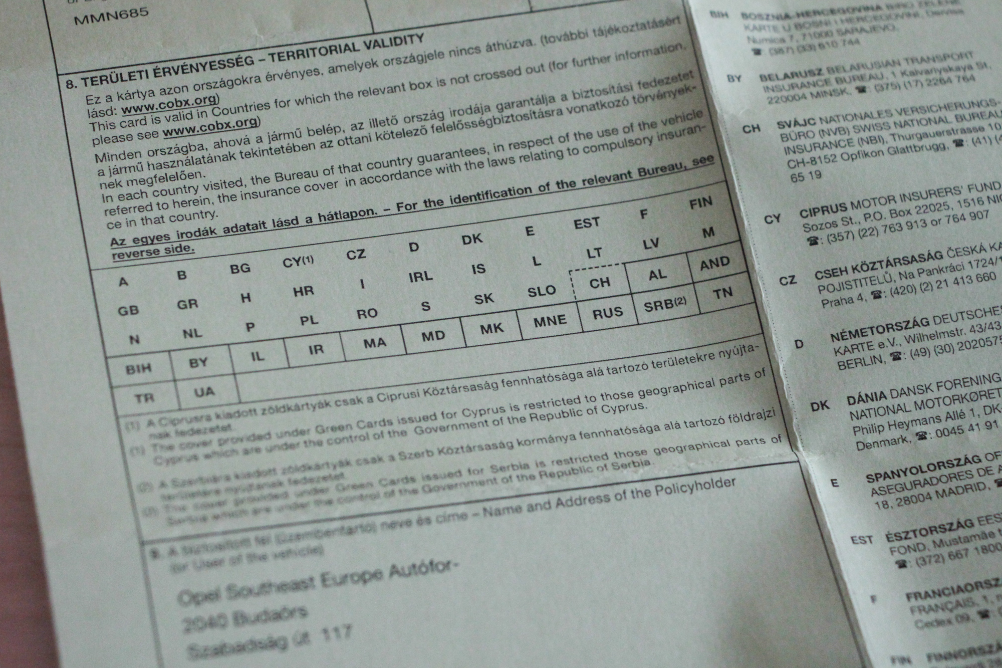 Nekem a biztosítóm – pedig volt több is – még soha nem küldött olyan zöld papírt, igaz nem is volt szükség rá, még nem utaztam olyan országba, ahol kellett volna.