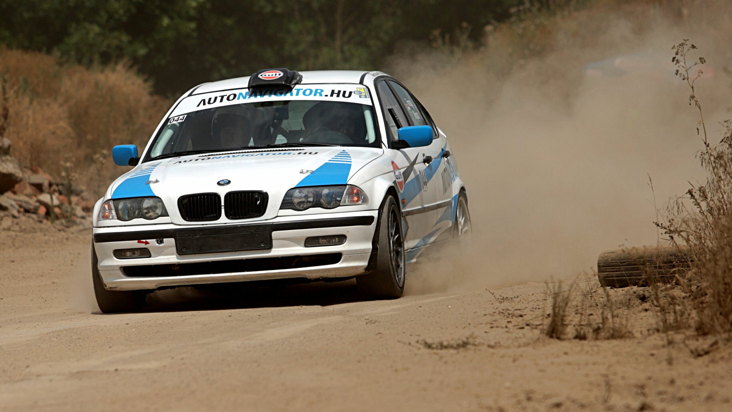 A pályabejárás és itiner írás utána a háromliteres BMW E46 közepes keménységű pályagumikat kapott, bízva abban, hogy az előző versenyeken használt “félverseny” gumiknál nagyobb tapadást nyújtanak. Az első körben még óvatosan ismerkedtek a szakasszal. Ekkor még sok helyen elég poros volt a reptér betonja, illetve a pár 100 méteres murvás szakaszt sem járták még ki eléggé, szóval igencsak csúszós volt. Valószínűleg ennek és a tapasztalatlanságnak is köszönhetően forgott meg egy jobbos kanyar után a páros, szó szerint kiugrasztva egy nyulat a bokorból.