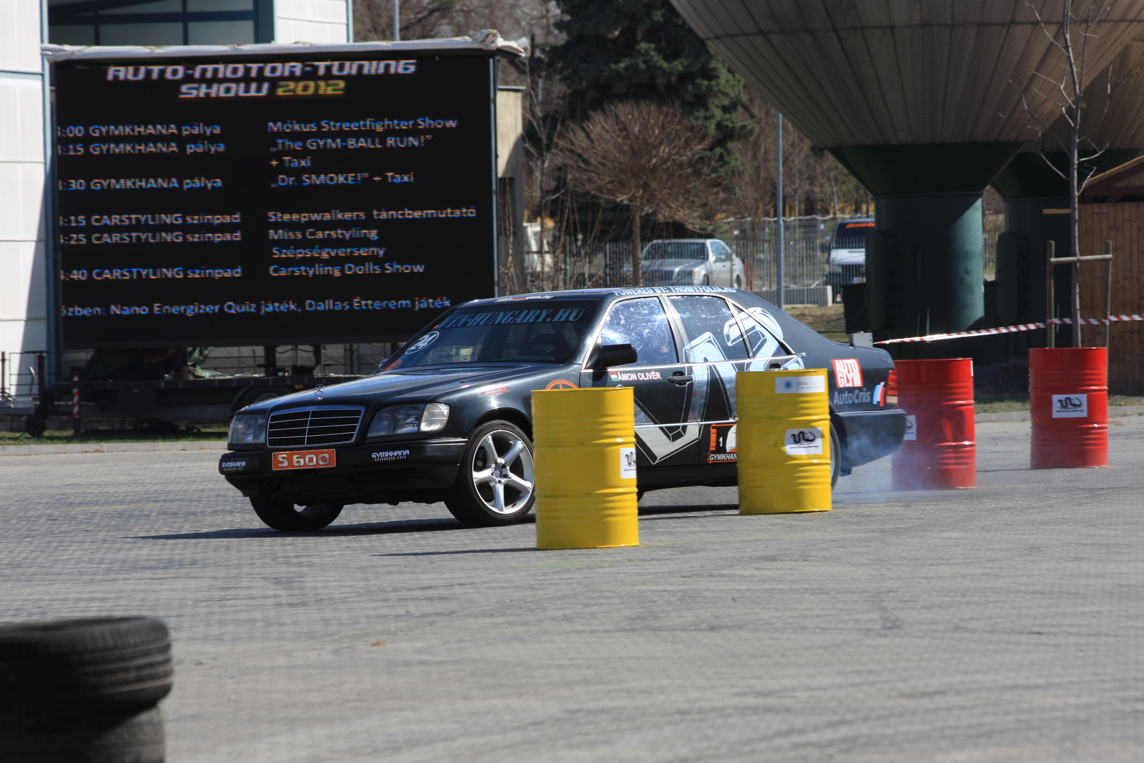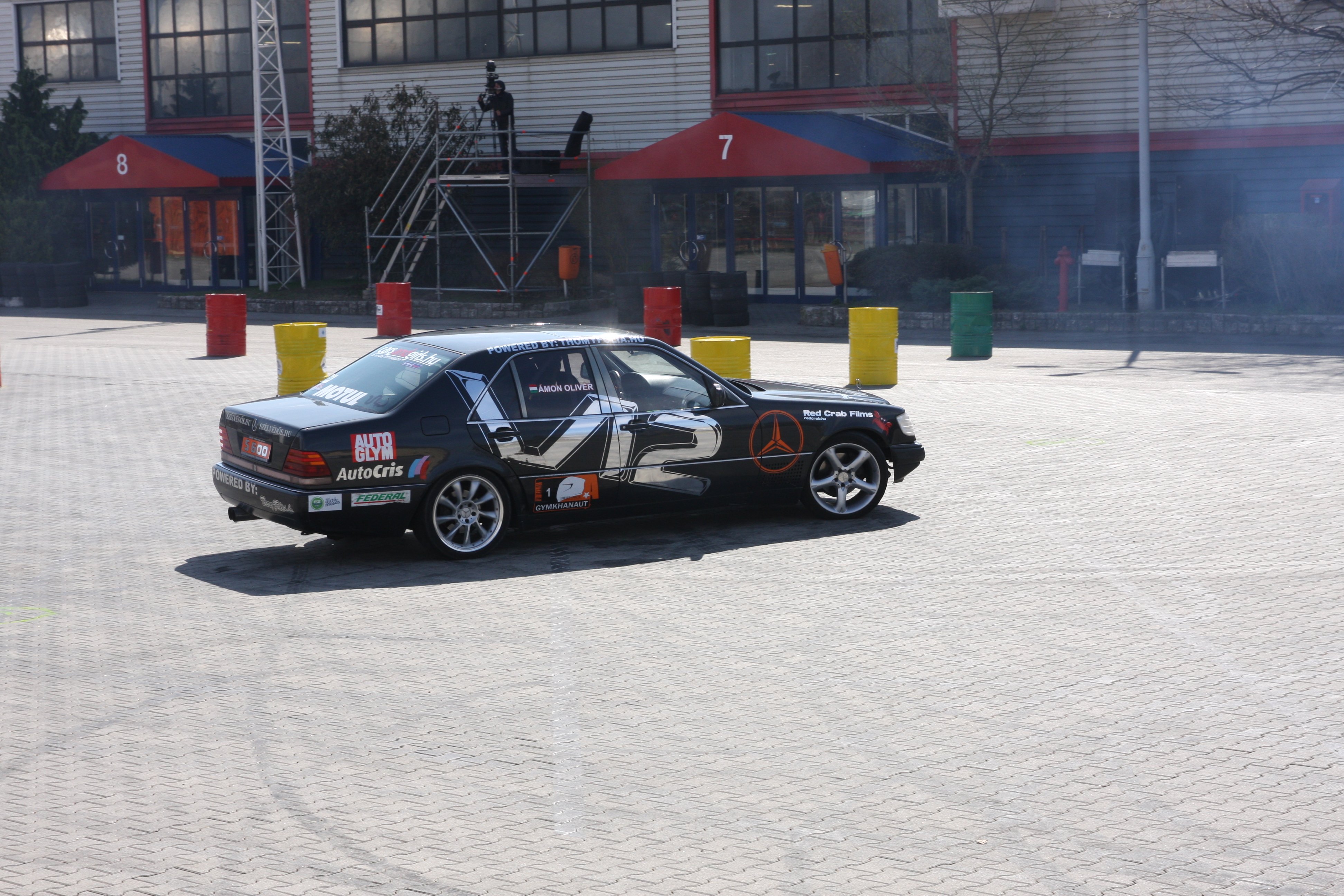 Igazából annyi autó van a kiállításon, hogy képtelenség lenne minden érdekességet felsorolni: kicsit még nézegettük a hazai gymkhanások gyakorlását az udvaron, akik közül a legnagyobb benyomást – V12-vel nem nehéz – a Mercedes W140 S600-at, azaz klasszikus bálnamercit hajtó, alig 19 éves Ámon Olivér tette ránk. Elképesztő látvány az üvöltve meglóduló kéttonnás egykori gengszterbatár.