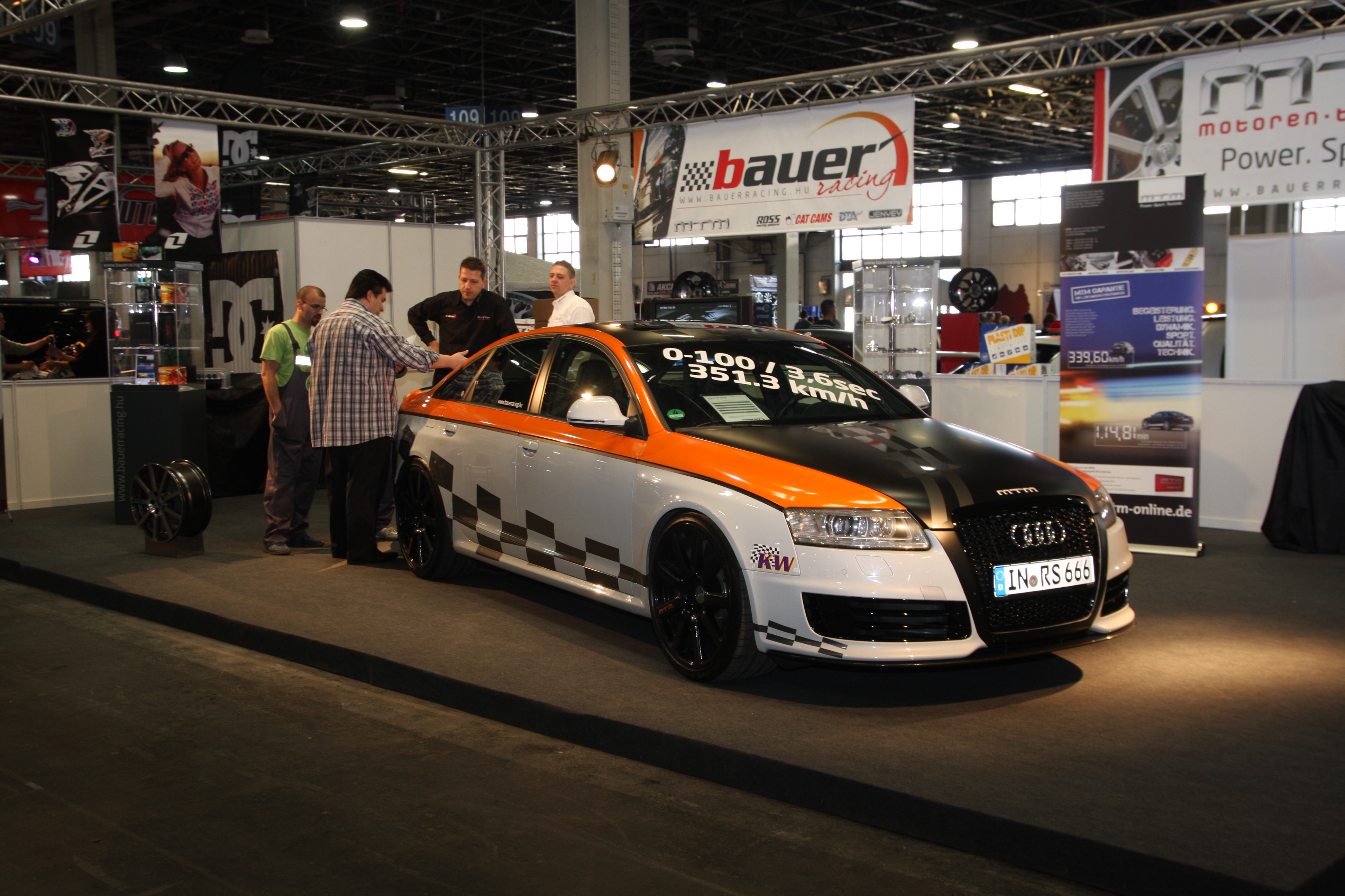 Találkoztunk az MTM 742 lovas RS6 Clubsporttal, mely szélvédőjén hirdette büszkén: 0-100 3,6 sec, 351,3 km/h: igazi rejtőzködő szörnyeteg, a felirat és a kockás zászlós festés hiányában észre se vennénk, micsoda fenevaddal van dolgunk. A számunkra eleddig ismeretlen, de meglehetősen igényes dolgokat kiállító, magyar Nerpel Individual standján futottunk össze egy régi ismerőssel, a Manhart Racing MH3 V8 RS Clubsporttal: az X6M 750 lóerőre húzott 4,4 literes V8-as biturbójával hajtott, egyébiránt is gyökeresen átépített M3-as 3,2 másodperc alatt van százon, végsebessége pedig 350 km/h felett jár.