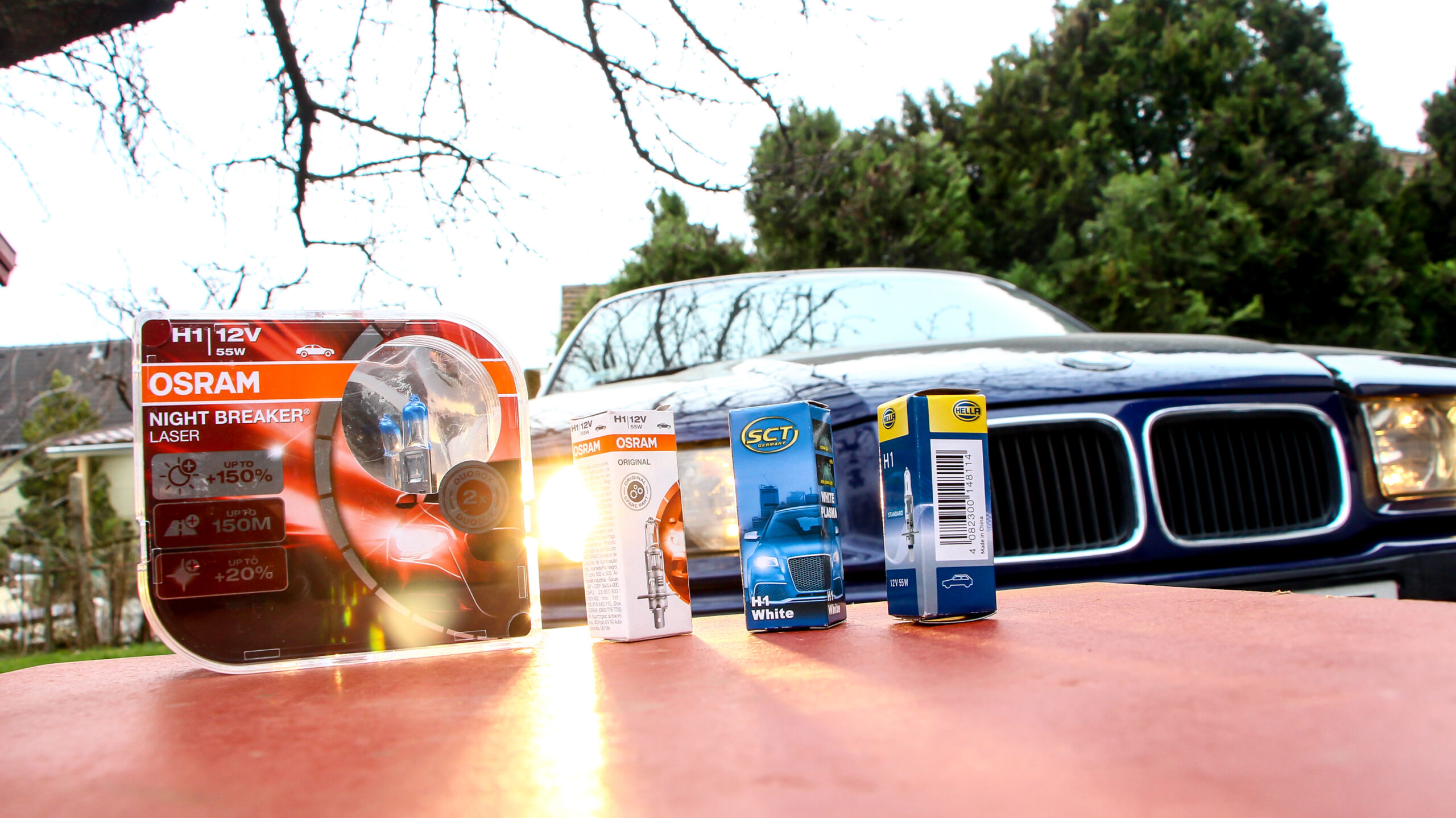 Kauffer jóvoltából próbálhattunk ki négy teljesen hagyományos, és egy pár annak tűnő H1-es halogénizzót, így meg tudjuk most mutatni, mi a különbség. H1-est választottunk, mert a tesztalanyba, a BMW-m fényszóróiba ilyenek valók. Elterjedtebb a két izzószálas H4, mely egy búra alatt hordja a tompított és a távolsági izzószálát, vagy a H7. A H1 esetében külön-külön izzó adja a tompított és a távolsági fényt, aminek megvan az az előnye, hogy külön is cserélhető, míg a H4-ben, ha csak az egyik izzószál ég ki, akkor is cserélendő. Az E36 mindegyik első lámpája H1-gyel világít, a ködlámpák is, a behelyezése pedig pofonegyszerű, ahogy a legtöbb izzóé. Egyértelműen pozicionálható, csak egyféleképpen tudjuk a helyére rakni, ahogy a legtöbb izzót is, nem is ezzel, hanem a hellyel van általában a gond, de ez egy öreg autó, itt akár könyékig is merülhetünk a lámpák mögött, rengeteg a hely.