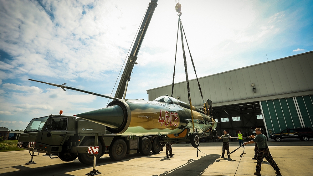 Kecskemétről szállították Pápára ezt a MIG-21-et, mely itt kezdte szolgálatát, majd több hazai reptéren is állomásozott, utoljára Szolnokon szállt le (Fotó: Honvedelem.hu)