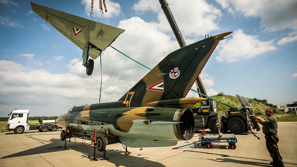 Szárnyait már a Pápai légibázis hangárja előtt kapta vissza, 1990 előtt összesen 1764 órát és 51 percet repült (Fotó: Honvedelem.hu)