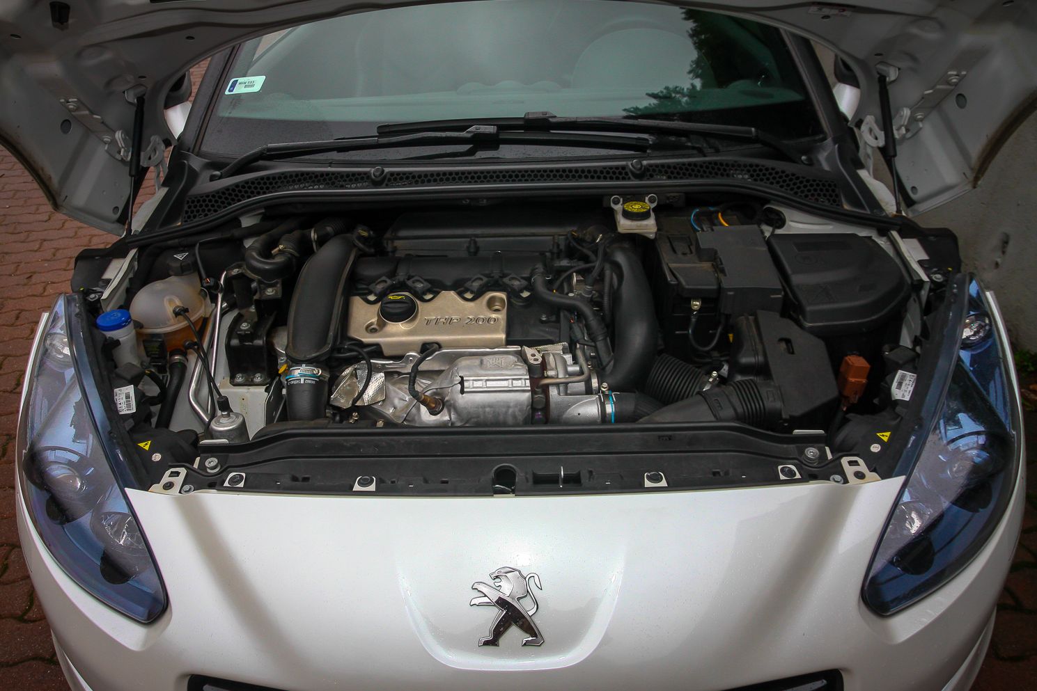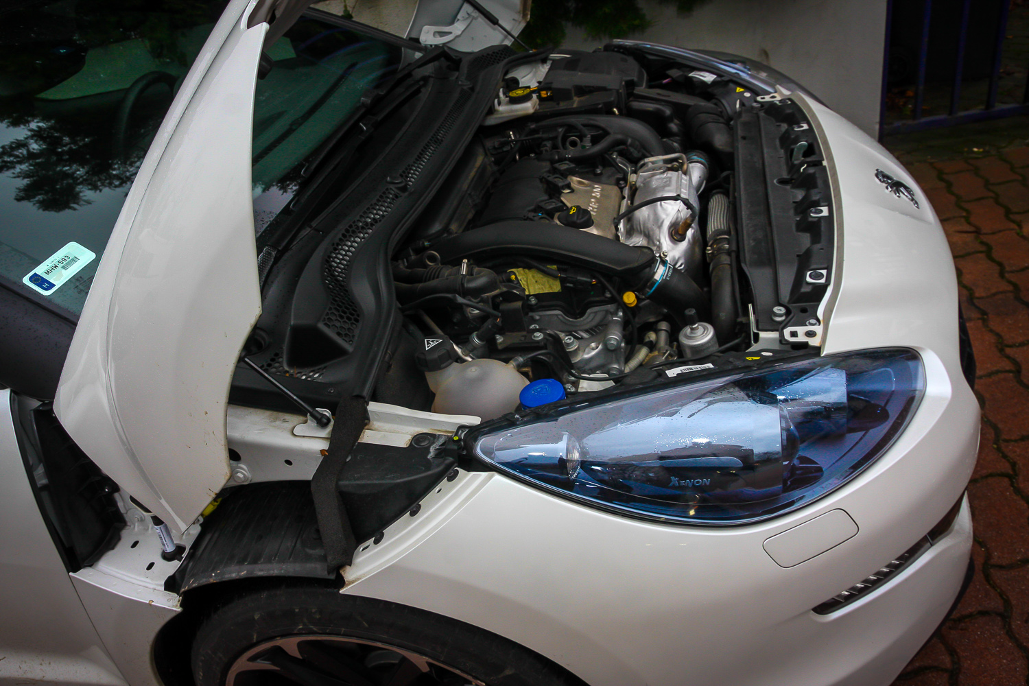Azta, a sárvédővel együtt nyílik a géptető. Többen kérdezték, milyen motor van alatta: legalább háromezres, ugye? Nem, csak 1.6 THP itt épp 200 lóerővel