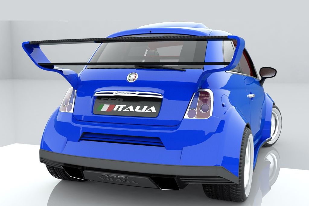 Gondolatait tettek is követték: megtervezte a Ferrari 458 Italia 4,5 literes V8-as motorjával felvértezett Fiat 500-ast, melyhez a csöppség 2,3 méteres tengelytávját további 30 centiméterrel toldotta meg, valamint az autó szélességét is növelte, elöl 20, hátul 30 centiméterrel. A növekedésre csöppet sem az utastér helykínálatának növelése érdekében, hanem azért volt szükség, hogy a Ferrari futóműve is bekerülhessen az 500-as alá. [BANNER type="1"]