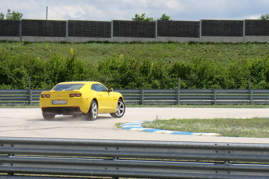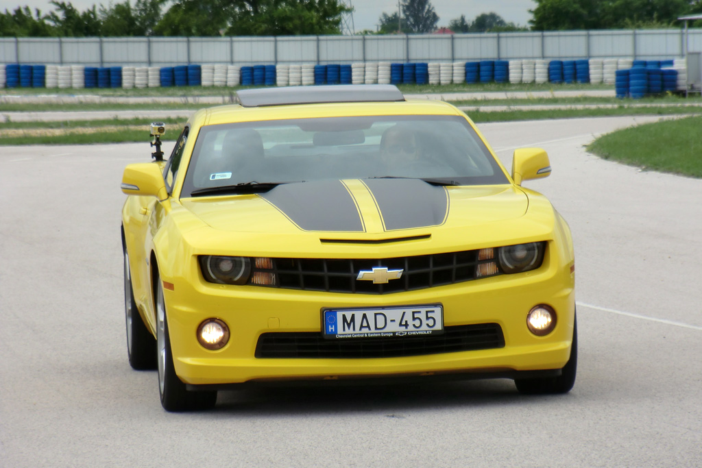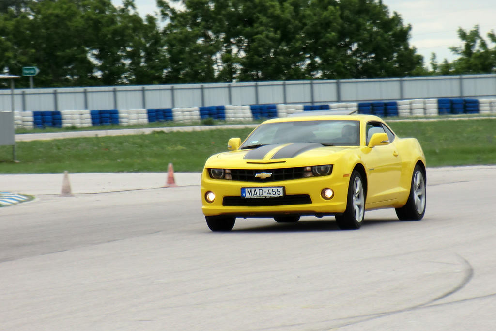 Megbocsátjuk, hogy az ülés oldaltartása legfeljebb átlagos, hogy picit is megküldve bőven 30 liter felett eszik a gép, s hogy a menetstabilizáló elektronikát öt kísérletből valamiért csak egyszer-kétszer iktathattuk ki teljesen a tesztautóban. Mondjuk az ESP Competition mód is pazar időtöltés, ekkor már nem tolja az orrát, hanem csóválja a farát, füstöli a gumit, értő kezekben driftbajnok, elvan ugye a gyerek, ha játszik. Károghatnánk, hogy Amerikában aztán csak igazán olcsó a Camaro, azonban nálunk sem drága, sőt. A magyar Chevrolet-importőrtől úgy értesültünk, hogy a tavaly novemberi bemutatón említett 15,5 milliós, viszonyítva akkor sem borsos ár mostanra tovább szelídült, a Coupe alapára jelenleg 14,05 millió forint. Aztán a Chevrolet Gyulait nem újságíróként, hanem az autó iránt érdeklődőként felhívtuk, s azt hallottuk, 12,9 millió a metálfénytelen, csíkozatlan, extramentes ár. Ha mindent kérünk bele, akkor is megvagyunk 15,5-ből, a kabrió megáll 17-ben. Polgárpukkasztóan hangzik, mégis jó vétel.
