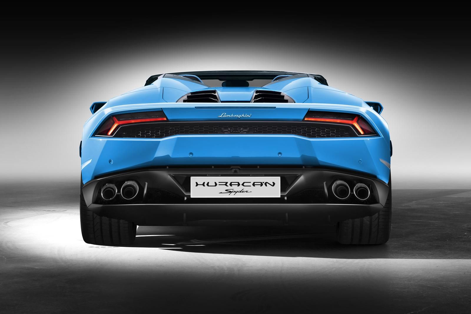 A nyitott tetős Huracán is a kupé V10-es 5,2 literes szívó benzinesét kapja, 610 lóerővel (8250-es fordulaton) és 560 Nm-es nyomatékkal (6500-as fordulaton). Csupán 3,4 másodpercre van szüksége a 0-100 km/órás futáshoz és 10,2 másodpercre a 0-200-as sprinthez, mielőtt elérné 324 km/órás csúcssebességét. Menetkész tömege 1542 kg, ami 43:57 arányban oszlik az első és a hátsó kerekek között.