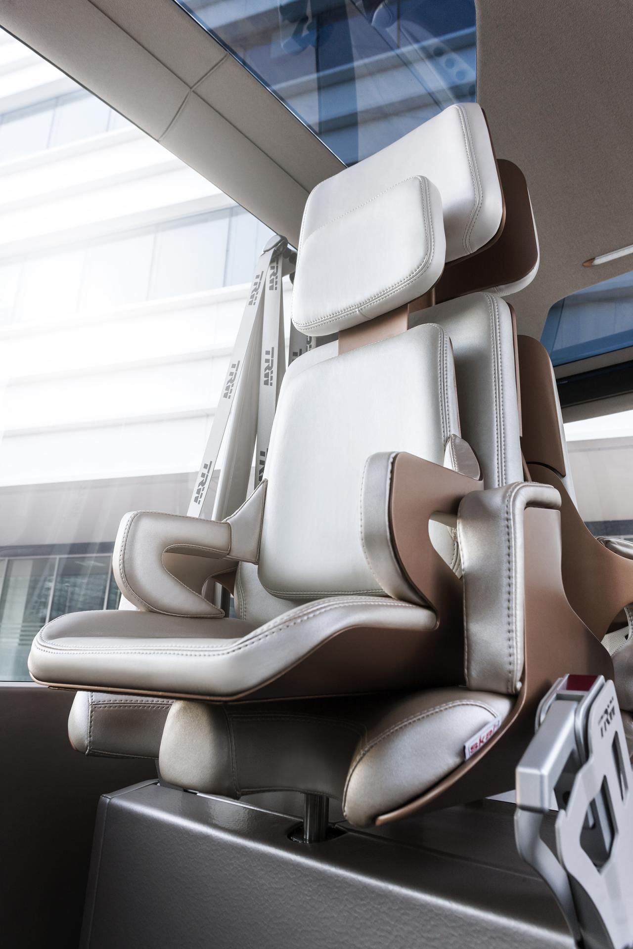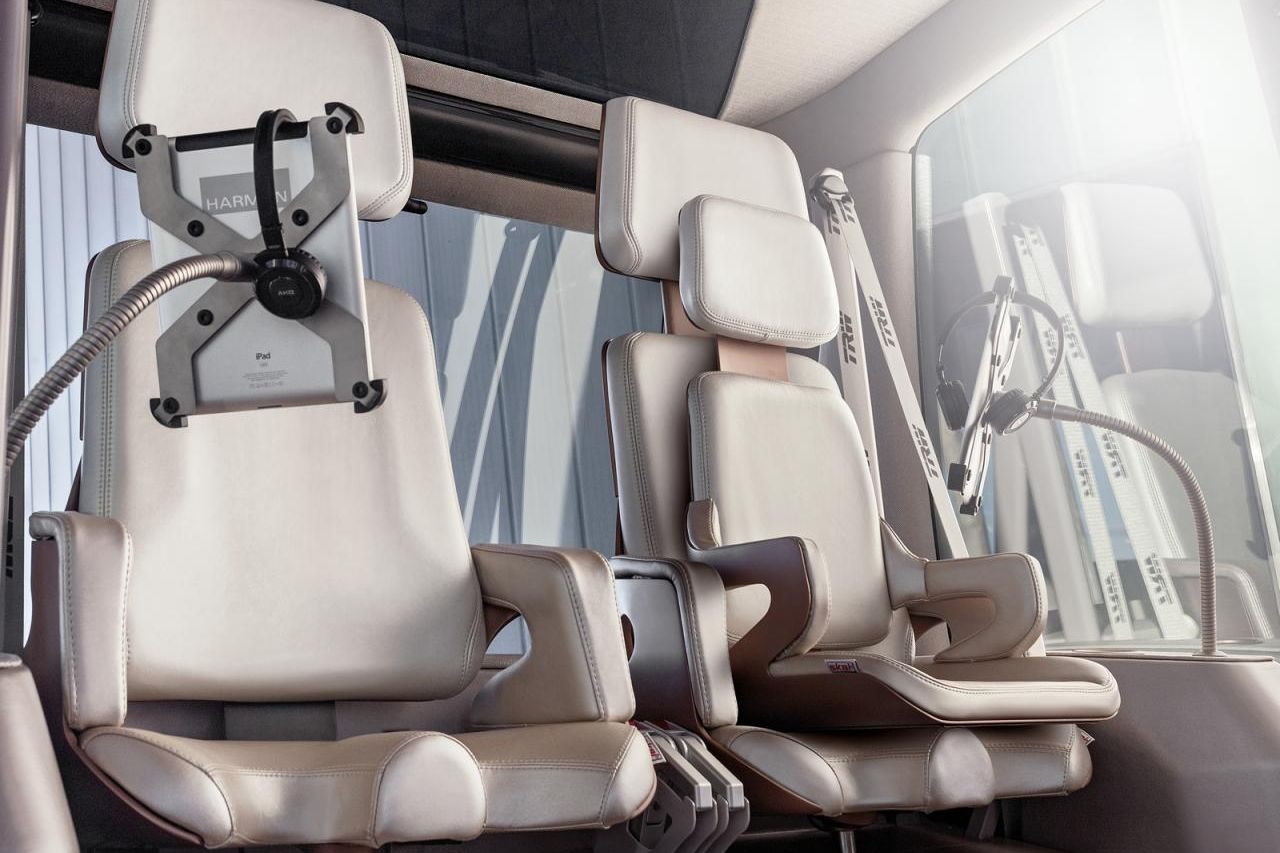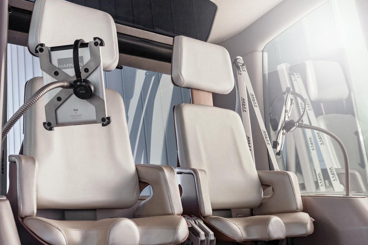 A hátsó ülő-, illetve állóhelyek székbetéttel is kiegészíthetők, eléjük táblagéptartó hajtogatható
