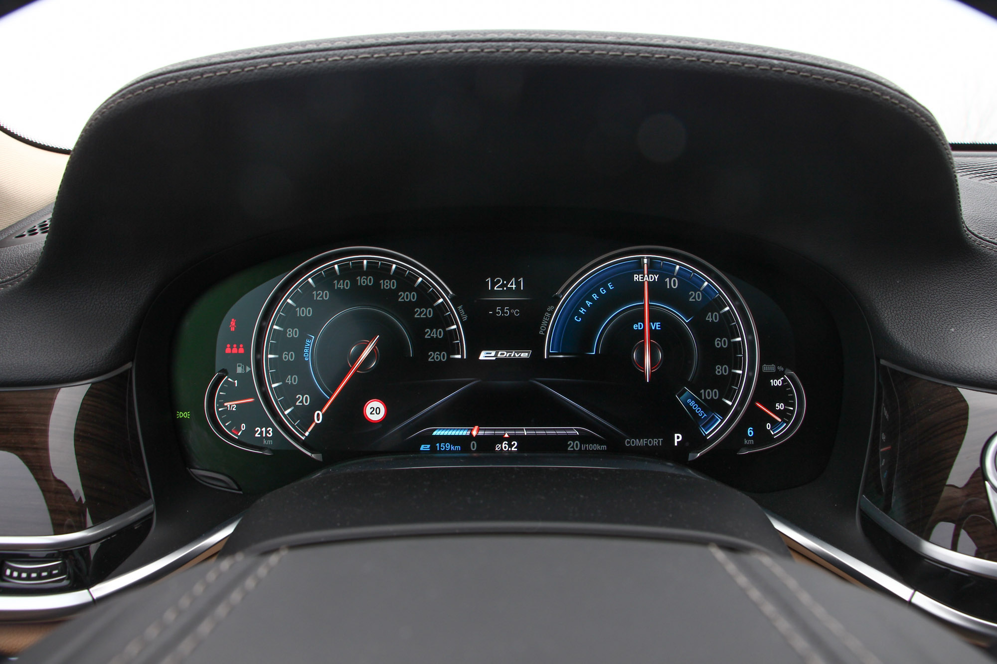 Négyhengeres. Az első 7-es BMW négyhengeres motorral. Szentségtörés? Nem, ez tartja némileg közel a földhöz, hiszen minek bele a pazarló hathengeres, vagy V8-as, ha éppen az alacsony fogyasztásról szól a 740e? A két hiányzó hengert kiegészíti a villanymotor, a rendszerteljesítmény 326 lóerő, és biztosan állíthatom, hogy bőven elég. A kétliteres, kettős megfúvású turbóval szerelt benzines amúgy se jár túl sokat, ha ügyesen gazdálkodunk az energiával. Villanymotorját a váltóházba építették a motor és a 8 fokozatú Steptronic automata közé, tesztautónk pedig csak hátul hajt. Rendes hibrid lévén alapvetően saját maga rendezi, éppen melyik egységgel takarékos, vagy lehetséges a haladás, így amíg van energia az akkumulátorokban, rendszerint csak a villanymotor hajt. Nagy gázra persze bekapcsol a benzines, ezt kiküszöbölendő eDrive módban addig be sem indítja, amíg van energiánk, nagy gázra sem.