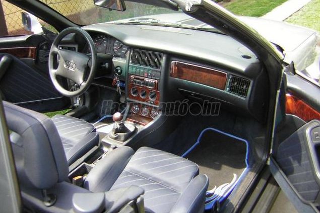 Audiból a régi 80-as alapú Cabriolet jöhet szóba, de a megadott értékhatárig csak egy olyan példányt találtunk, amely nem külföldi import, és ezért nem kell rá pluszban regisztrációs adót fizetni. Az ezüstszínű járgány 1995-ös kiadás, viszonylag gazdagon extrázva: légkondicionálóval, blokkolásgátlóval, szélfogóval, nem agyonpadkázott alufelnikkel várja új gazdáját, és tulajdonosa szerint 142 ezer kilométert futott eddig. Az utastér valóban szépnek tűnik, nem szakadtak az ülések, a kormányról nem foszlik a bőr, és egyformán csillognak a lakkozott fabetétek. A karosszéria sem viharvert, nincsenek gagyi beavatkozásra utaló lámpacserék, sufnituningos légterelők, a felcsukott tető nem szakadozott, egyedül a hosszában felragasztott (vagy festett) csíkozás rondít bele az összképbe, csorbítva az eleganciát. 1,38 millió forintért mindenképpen érdemes lenne Szolnokra elutazni, és megnézni.