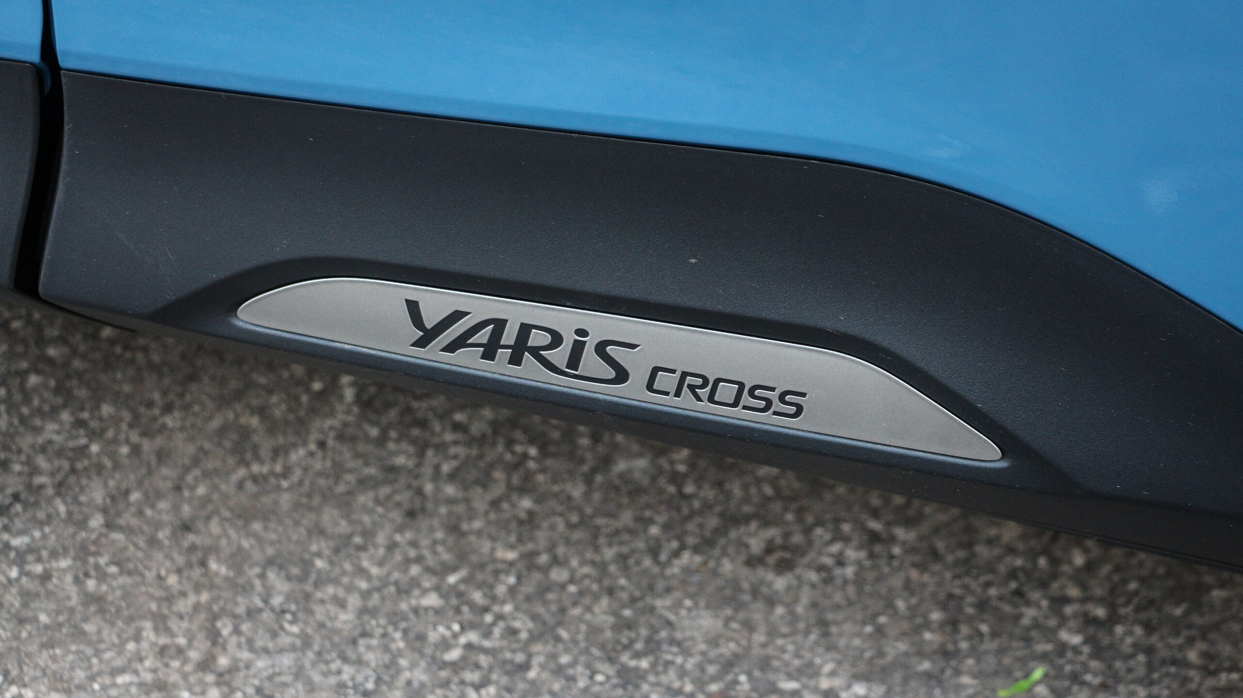 A csomagtérajtón csak a Yaris felirat olvasható, oldalt a műanyag ajtódíszlécen viszont már a "Cross" is feltűnik