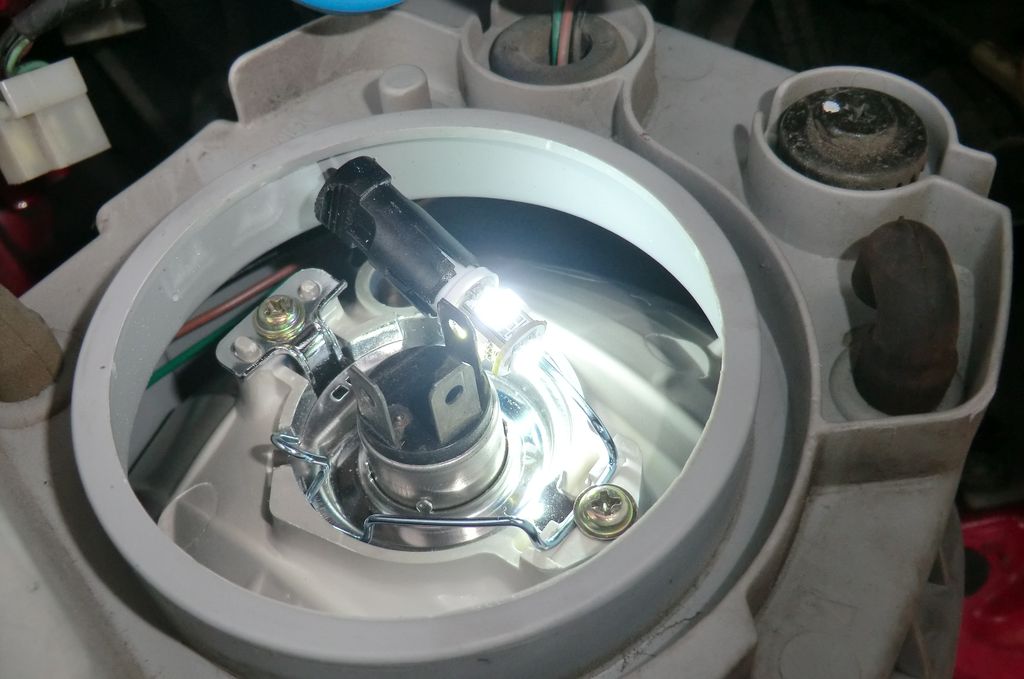 Gyengébben világít az eredeti izzó, ezért szerintem biztonságot növelő módosítás a takarékos LED beszerelése