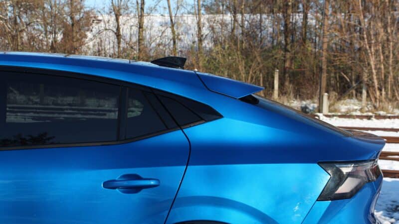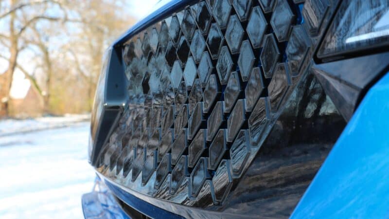 A D-szegmensbe szánt SUV-kupé formaterve pedig akárhonnan is nézzük piszok jól sikerült. Az első és hátsó lámpatestek önmagukban is műremekek, de a csomagtér-ajtón elhelyezett légterelő is igencsak különleges. A frontrészen az óriási emblémát apró rombuszok ölelik körbe, amelyek menet közben mozognak is annak függvényében, hogy a technika éppen mennyi hűtést kíván meg. Ennek érdekessége, hogy elméletileg a mesterséges intelligencia segítségével alkották a mérnökök. A tesztpéldány egyébként a lehető legvadabb megjelenést kapta, mivel az epirit Alpine felszereltségi szintet kapta.