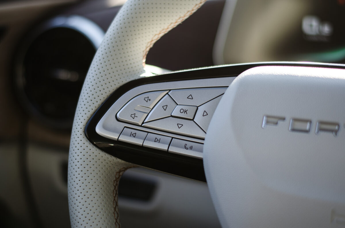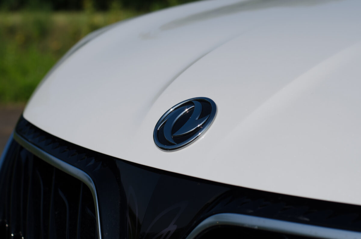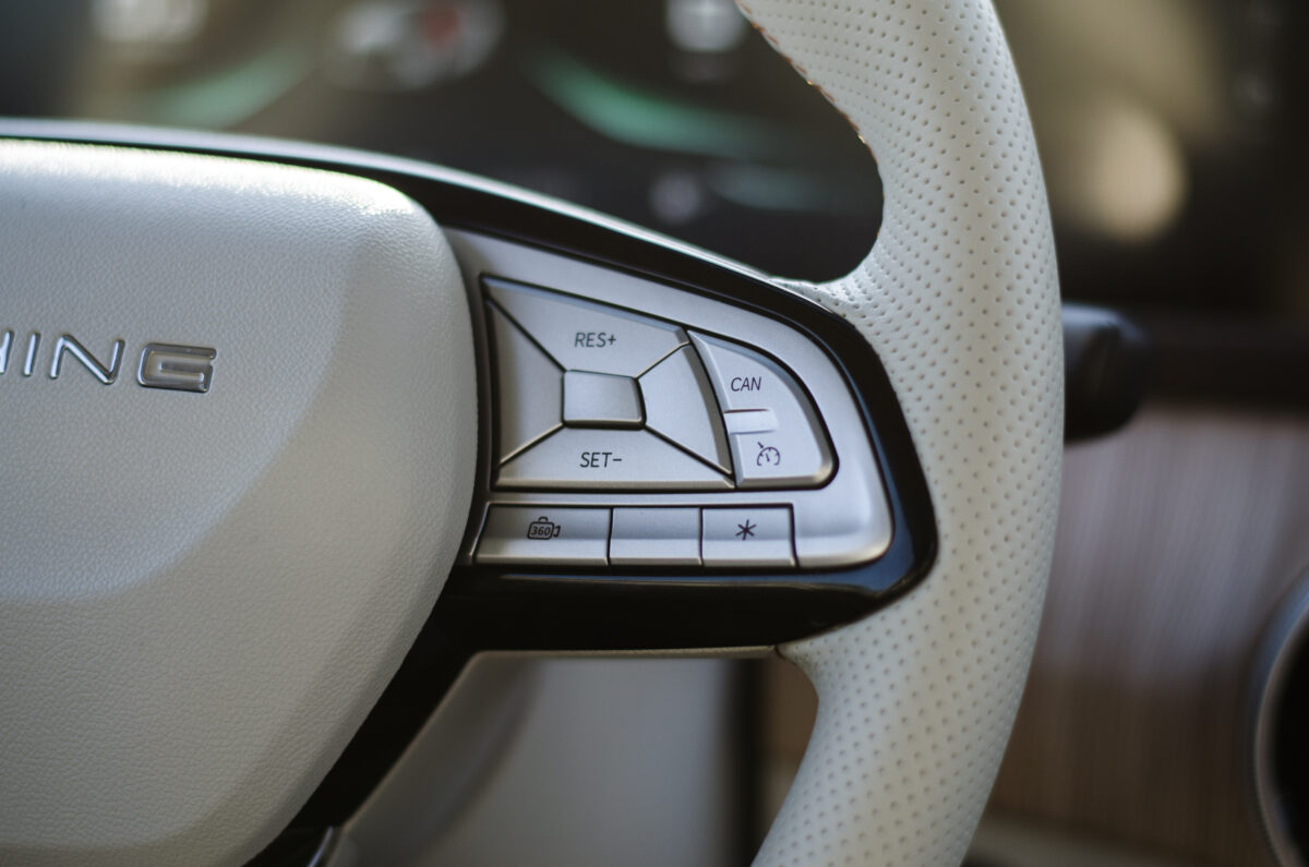 Nincs azonban mit szégyellni a kínai márka emblémáin, még akkor sem, ha az autó orrán mindez világító szárnyakban nyilvánul meg