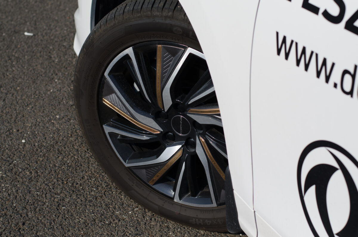 A karosszéria méreteihez képest kicsi kerekek és kerékjárati ívek is a régebbi, idejét múlt platform és futómű jelei