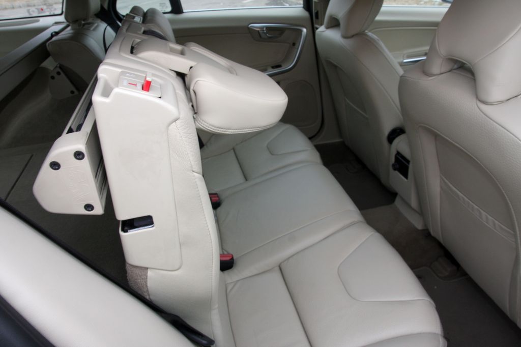 A svéd modell belső formavilágából sugárzik a skandináv egyszerűség, ezzel együtt kell prémiumos érzetet sugoráznia, valamint a Volvo fő kvalitásait hangsúlyozandóan célszerűnek lennie – összetett feladat ez! Az összkép (a V60 jellemzői közül nem egyedülállóan) ambivalens. Az ülések (a Summum szint részeként bőr) kárpitozása igényes, maguk az ülések azonban – már csak méretükből adódóan is – nem olyan komfortosak, mint a C5 óriásfotelei. A műanyag műszerfal nem az a nívó, mint a Citroën féle bőrbe varrott, a lebegő középkonzol a magasabb utasok térdét nyomó kiálló szélével majdhogynem egyenesen elhibázott, a márkára jellemző gondoskodó részleteket kicsit keresni kell. Lehet persze találni: például a 60 000 forintért mért, nagyobb gyerekek számára kihajtható hátsó ülésmagasító sokszor jól jöhet, miként a csomagtérben kihajtható csomagszeparáló is (egy válaszfal felhajtásával felezhető a csomagtér annak érdekében, hogy a kisebb bevásárlások cuccai se csúszkáljanak). Üléshajtásból is dicséret illeti a Volvót, a három részben, 40/20/40 arányban dönthető háttámlával kitűnően variálható a középkategóriában amúgy kicsinek számító, 460 literes csomagtér. Hosszú tárgyak szállításához előrebillenthető az első utasülés támlája is, ám az ülés csak annyira billen előre, hogy a fejtámla a műszerfal felső síkját folytassa. Kockázatos bármit is úgy betenni, hogy az pont ki tudja ütni a szélvédőt.