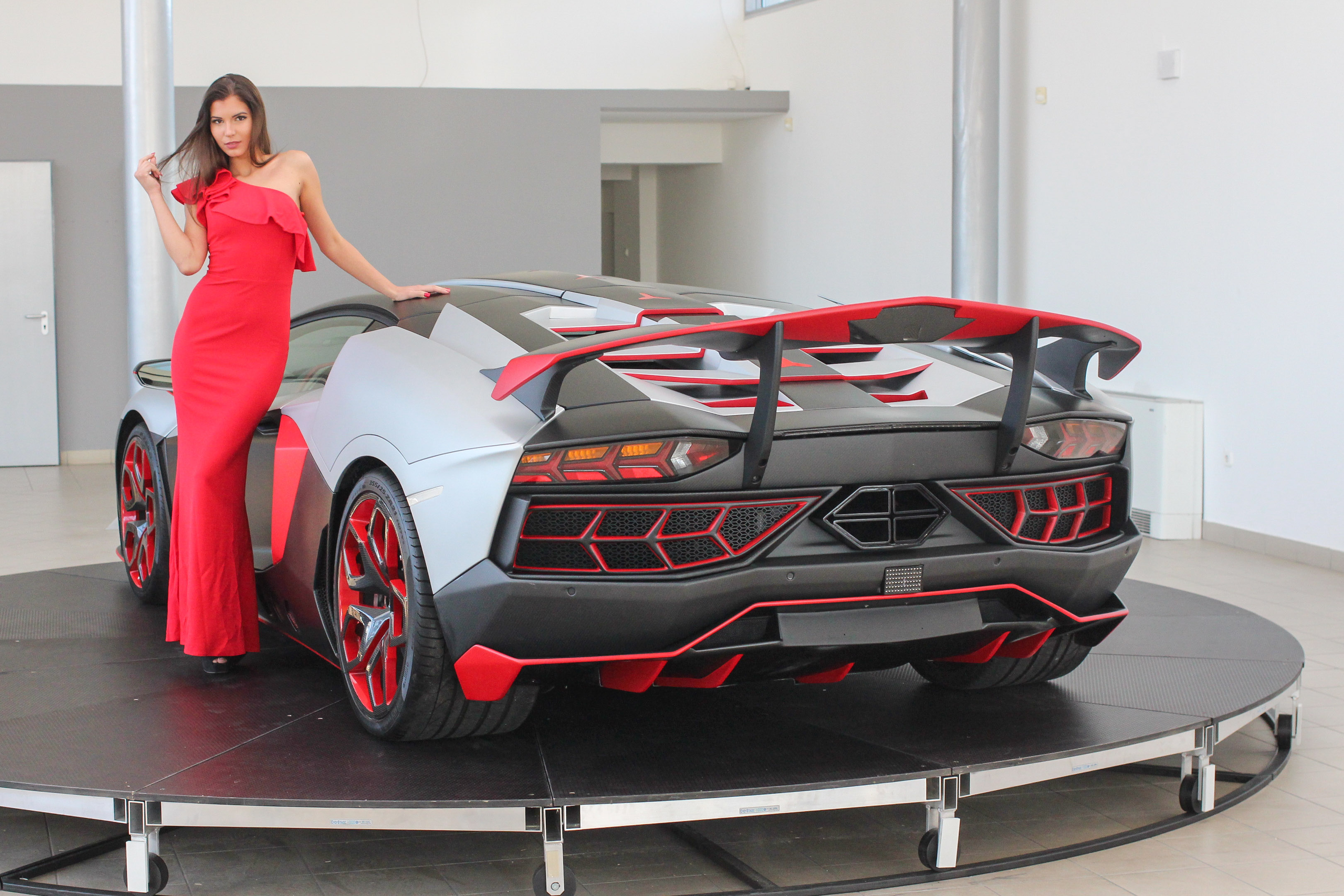 Mit is tudnak a dunaújvárosi Ferrarik, Lamborghinik? Ha az autószalonok szintjén nézzük, például azt, hogy a magyar embereknek munkát adó cég magyar hoszteszekkel járja a világot, ez örömteli, ahogyan az is, hogy a magyar lányok köztudottan szépek. Utóbbi feledtetheti az autókon látható egy-egy nem 100%-osan tökéletes megoldást. Igen, szerelemautót, valljuk be, illúziót árulnak a szupersportautók gyártói. Józan ésszel belegondolni is borzalmas, hogy mennyi pénzért, de jó hallani az itthon felkerült kipufogók mesés hangját, amit az Avanti Rosso esetén a Lamborghini 6,5 literes V12-ese szólaltat meg. A gyárilag 700 lóerős teljesítmény állítólag 780 lóerő lett a minimális átalakítással. A gyorsulási élmény pedig letaglózó lehet, ahogyan persze alapból is az egy Aventadorral: a 0-100km/órás érték mindössze 2,9 másodperc. És akkor ehhez jön még az egyediség.