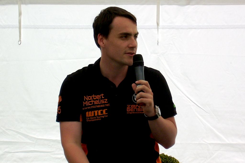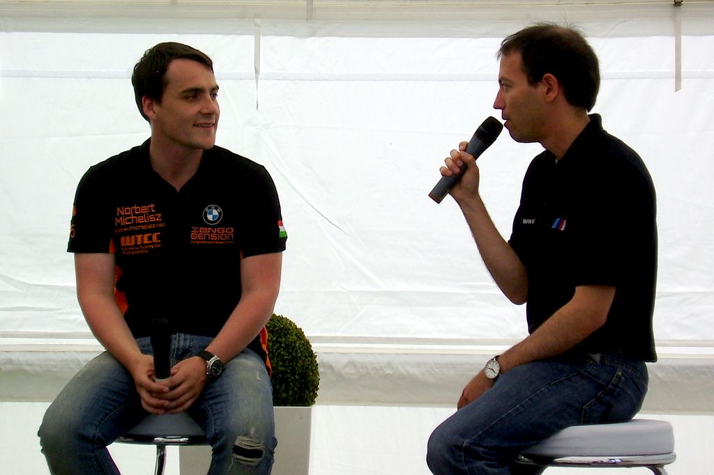 Michelisz Norbert a BMW Magyarország szóvivőjével, Jávor Dániellel beszélgetett a bemutatón