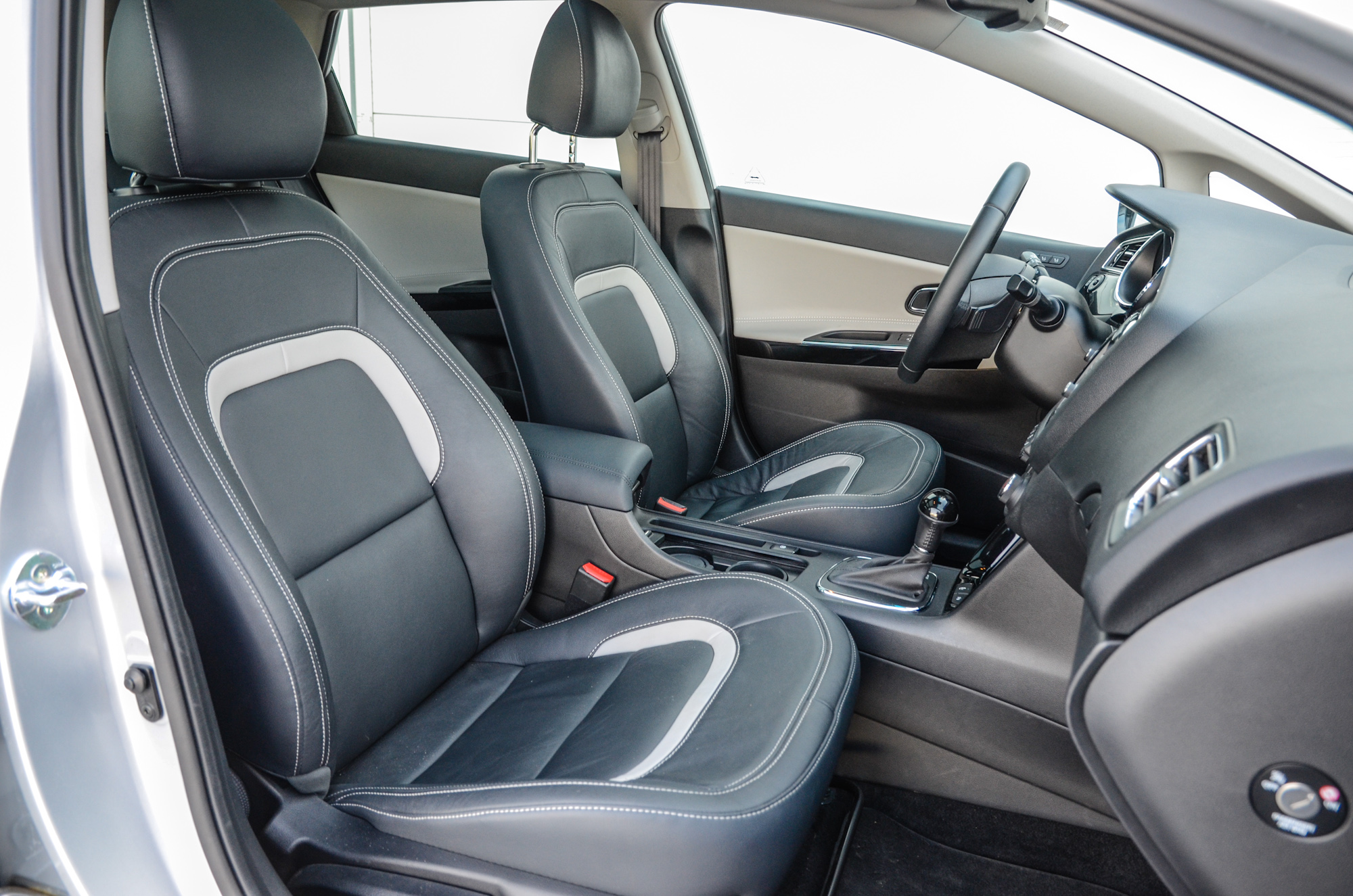 Prémium. Nem anyagminőségben, hiszen ezen a téren még van mit fejlődni az igazi prémium márkákhoz képest, felszereltség szempontjából viszont felveszi a kesztyűt a modern prémiumgyártók extráival. Az ülésfűtés mellett megtalálható a kormányfűtés, ami a jelenlegi időjárásban kellemes tud lenni. Az ülésfűtés egyetlen hátránya, hogy néhány percnek el kell telnie, amíg elkezdjük érezni a meleget. Ezen kívül számos vezetést segítő berendezés található meg a cee'd-ben. Városi vészfékezőrendszer, sávváltást segítő rendszer, automatikus táblafelismerés, parkolóradar, tolatókamera, automatikus parkolórendszer, Xenon fényszóró, panoráma napfénytető, elektromos ülésállítás, kulcs nélküli nyitás és indítás.