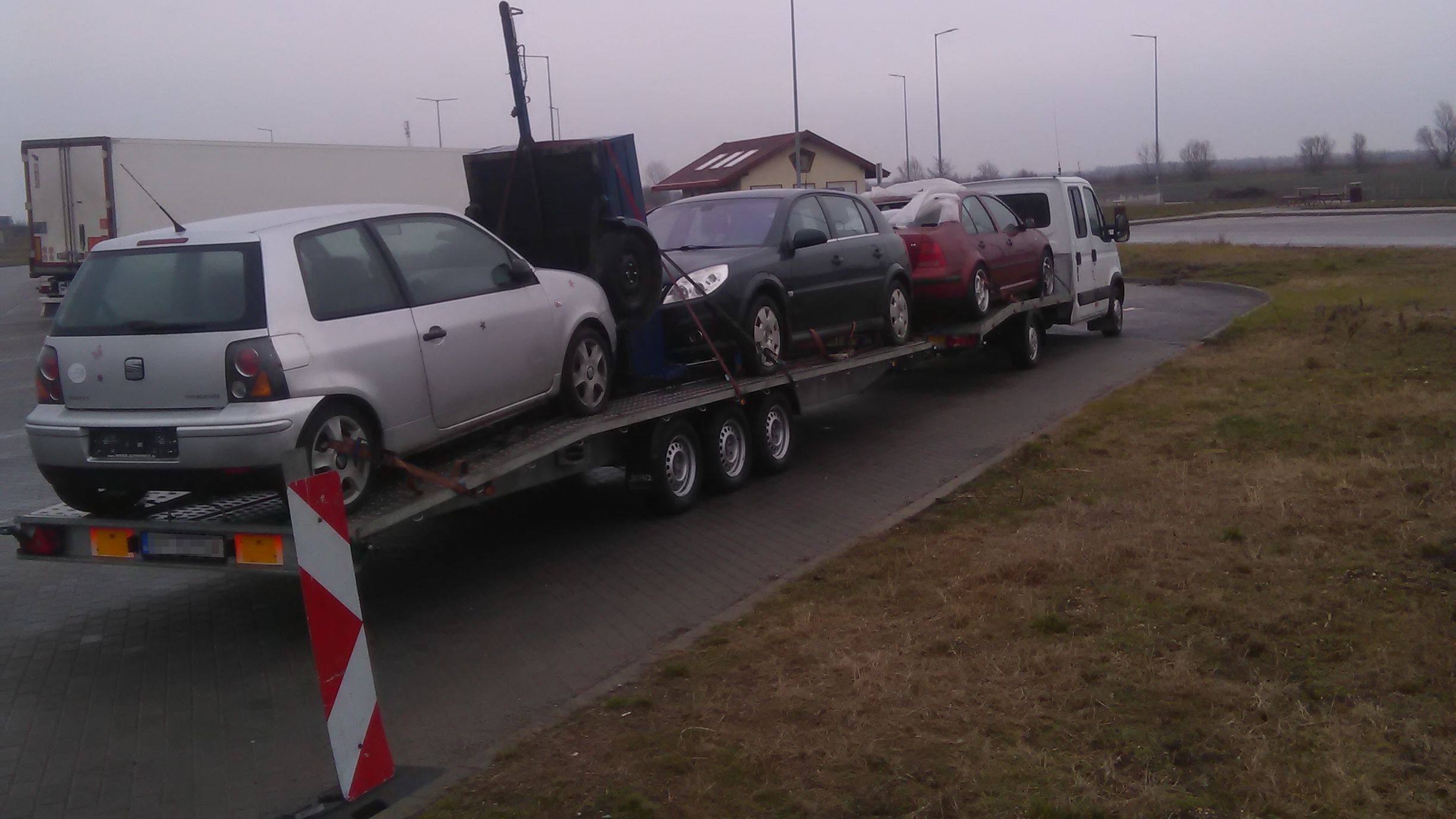 A túlterhelt, azaz a megengedett össztömeget meghaladó járműszerelvények rendszerint Nyugat-Európában vásárolt használt autókat szállítanak Kelet-Európába