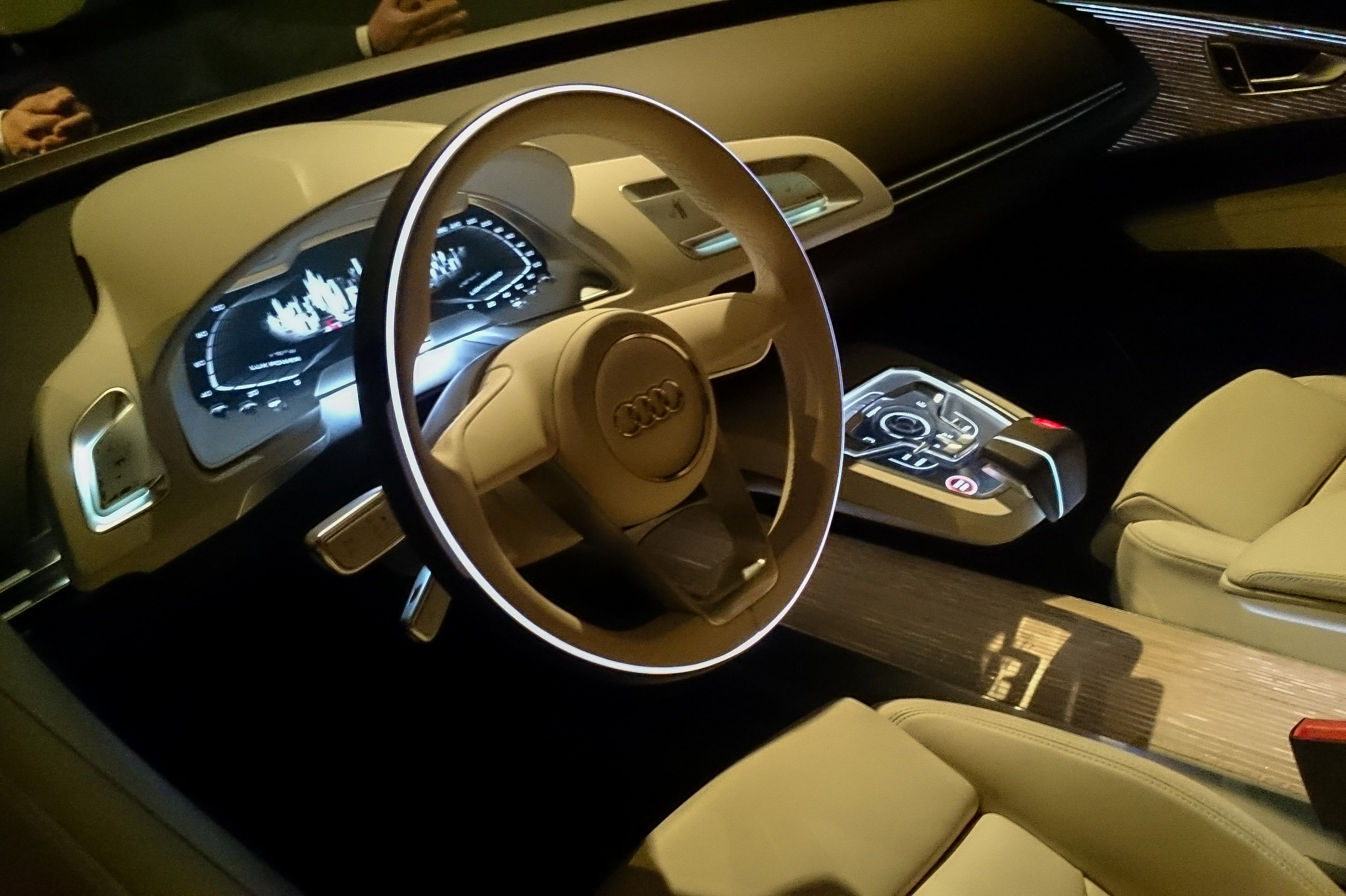 A világítástechnika az utastereket sem hagyja érintetlenül, például fényvezető textilekkel egyedi, a sofőrt akár a vészfékezésről is tudósító beltéri fények is felmerülnek koncepcióként. Hangsúlyozva azt, hogy a fény nem csak önmagáért, a megvilágításért fontos, hanem esztétikai, de még információhordozás szempontjából is. Utóbbi nem meglepő, hiszen a fagyveszélyre is fénnyel, egy-egy apró piktogrammal figyelmeztet a mai autók műszerfala. Egykor az Audikban talán az útra vetített virtuális jégborda teszi majd, miközben a kormány karimáján tán zúzmara jelenhet meg.