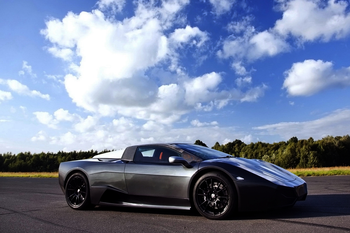 Nyitott ajtókkal, a Lamborghini bikás emblémája nélkül első pillantásra nehéz megmondani, hogy lengyel, és nem olasz sportkocsival van dolgunk - a részletek kidolgozásán azonban még lehet finomítani